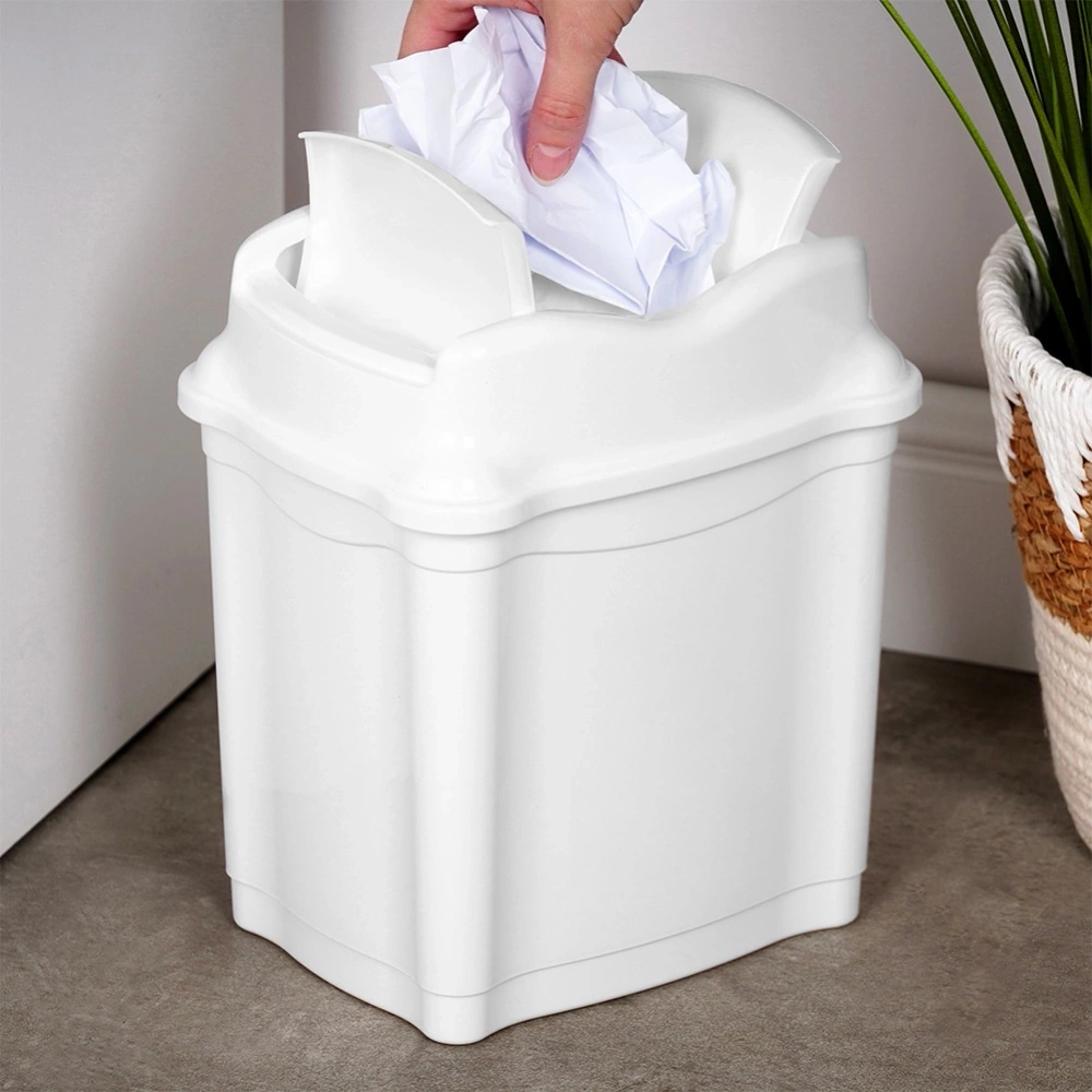 - Kosz na śmieci o pojemności 5 l. Wykonany z wytrzymałego tworzywa w białym kolorze. Wyposażony w uchylną pokrywkę, co ułatwia wyrzucanie odpadów.