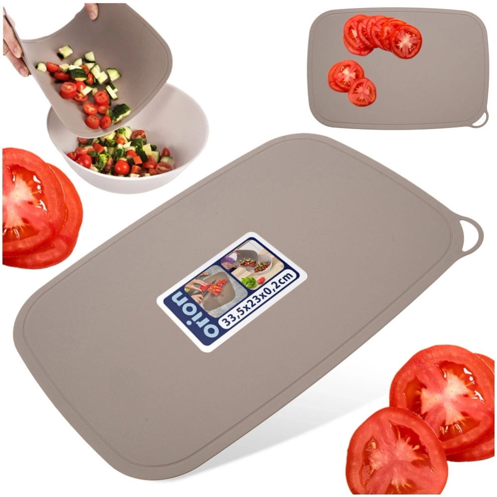 Deska ma formę elastycznej podkładki, którą można w łatwy sposób wygiąć, co ułatwia przerzucanie pokrojonych produktów. Dzięki niej łatwo utrzymamy blat w czystości i ochronimy go przed zarysowaniami. Deska, dzięki swojej funkcjonalności, będzie często wykorzystywana w kuchni. Wykonana z materiałów bezpiecznych dla zdrowia i neutralnych dla żywności. Oryginalny produkt czeskiej marki Orion. Wyprodukowano zgodnie z europejskimi standardami.
