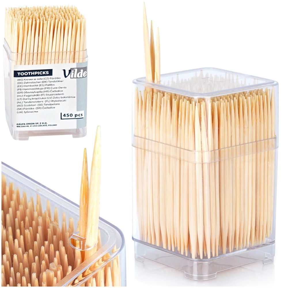 - Zestaw 450 szt. wykałaczek w wygodnym opakowaniu. Idealne do przekąsek, koreczków itp. Przydadzą się po spożytym posiłku. Wykonane z drewna bambusowego.