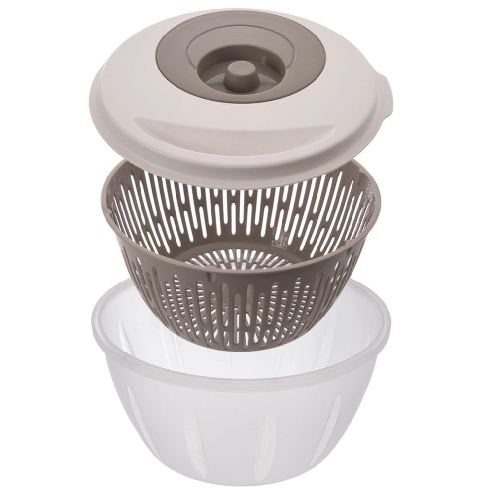 - Uniwersalne zastosowanie - Sprawdzi się także do osuszania innych warzyw liściastych, jak np. szpinak, rukola czy jarmuż. Miska może służyć również do serwowania potraw np. sałatek, a wyjmowany wkład w formie koszyczka posłuży za cedzak.