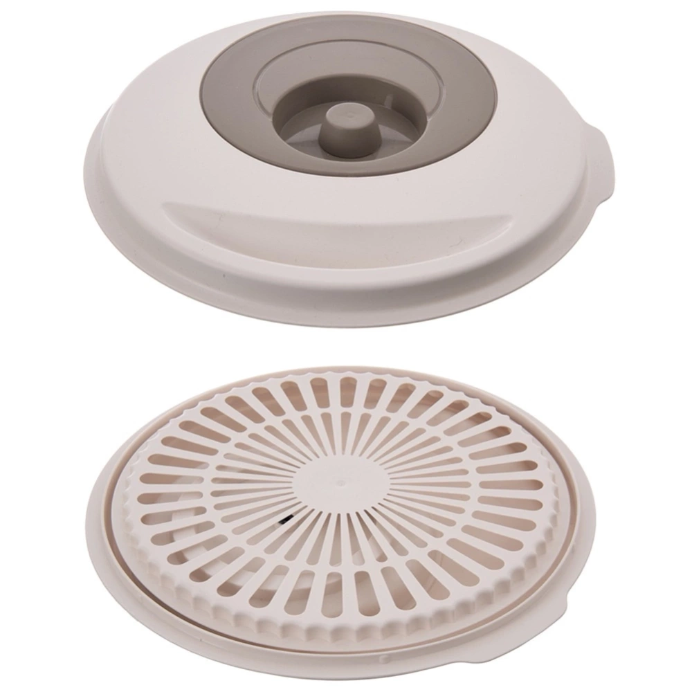 - Solidna i wytrzymała - Misa wykonana z wytrzymałego tworzywa w przezroczystym kolorze. Koszyk w kolorze beżowym, a pokrywka w białym kolorze z elementami beżowymi.