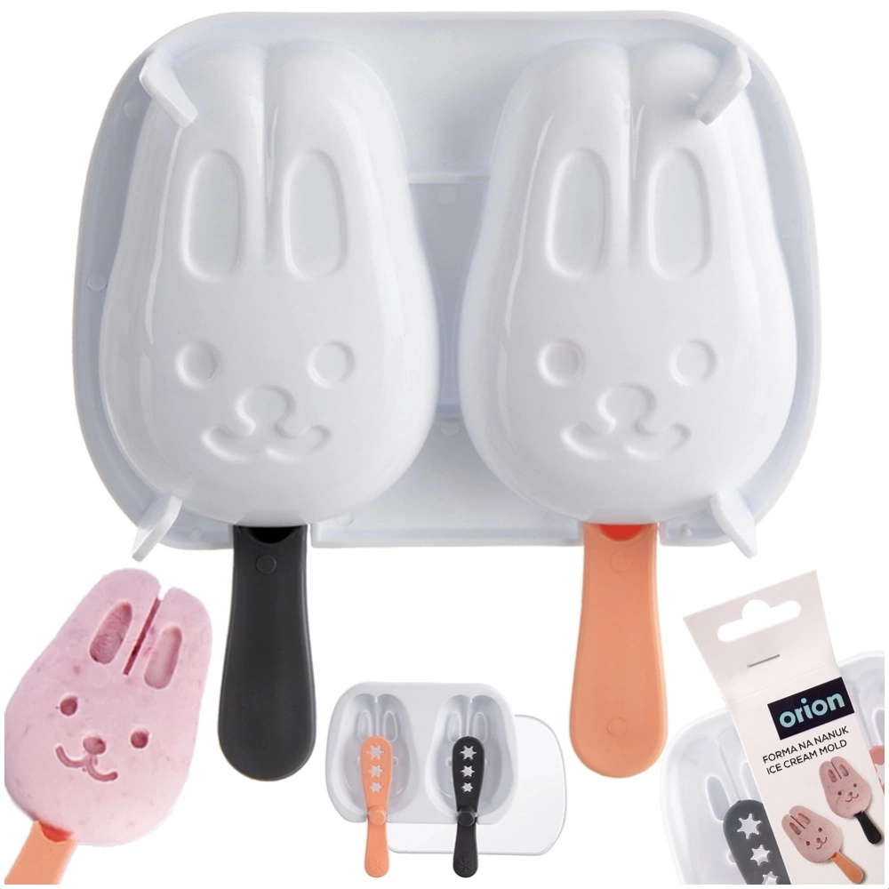 - Forma do przygotowania 2 szt. lodów i deserów - Forma do lodów pozwoli na przygotowanie dwóch domowych lodów z sorbetu, śmietany, soków i owoców w kształcie króliczka. Możemy przygotować w niej również desery z czekolady i kremów. Wymiar całkowity foremki na lody wynosi 12 x 12,5 x 2,5 cm, po przygotowaniu lód ma wymiar 7,5 x 5 cm.