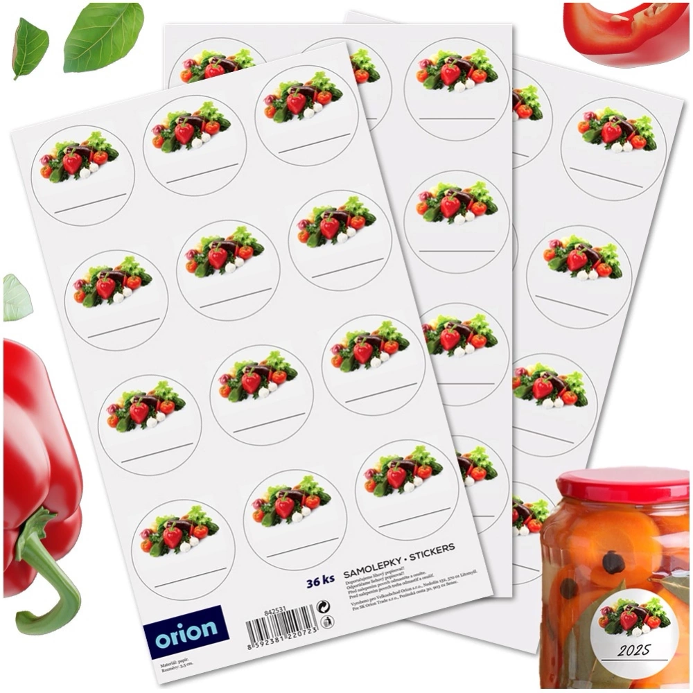Zestaw 36 szt. etykiet samoprzylepnych. Naklejki świetnie sprawdzą się do podpisywania słoików, butelek, ale również pojemników z przyprawami oraz szafek. Pomogą utrzymać porządek w domowej spiżarni. Dzięki nim podpisane słoiki, pojemniki prezentują się bardzo elegancko i mogą stanowić element dekoracyjny. Oryginalny produkt czeskiej marki Orion. Wyprodukowano zgodnie z europejskimi standardami.