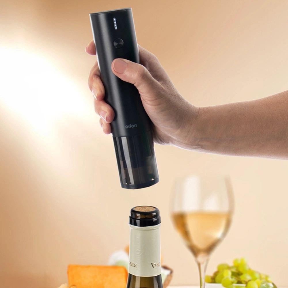Elektryczny korkociąg do wina umożliwia łatwe i szybkie otwieranie butelek wina. Dodatkowo, posiada przecinak do folii, który ułatwia usuwanie zabezpieczenia z szyjki butelki. Nadaje się do otwierania różnych rodzajów korków. Prezentuje się bardzo elegancko, więc jest doskonałym pomysłem na prezent dla miłośników wina, na przykład z okazji parapetówki. Oryginalny produkt czeskiej marki Orion. Wyprodukowano zgodnie z europejskimi standardami.