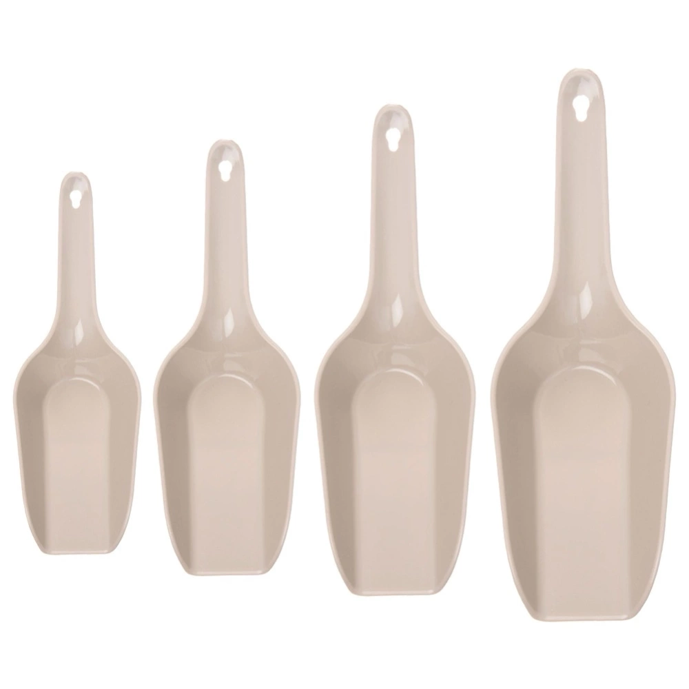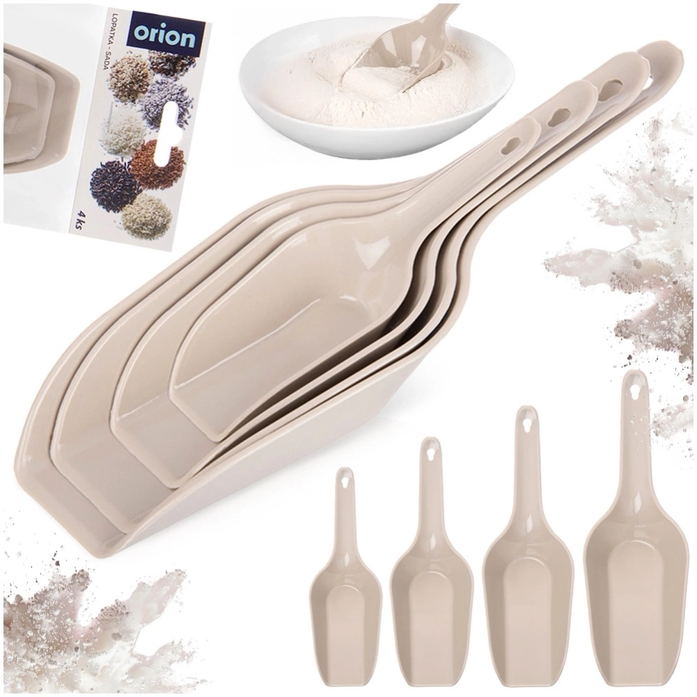 - Zestaw łopatek kuchennych, wykonanych z wysokiej jakości tworzywa. Idealne do nabierania produktów spożywczych np. karmy dla zwierząt, mąki, kaszy, cukru itp.