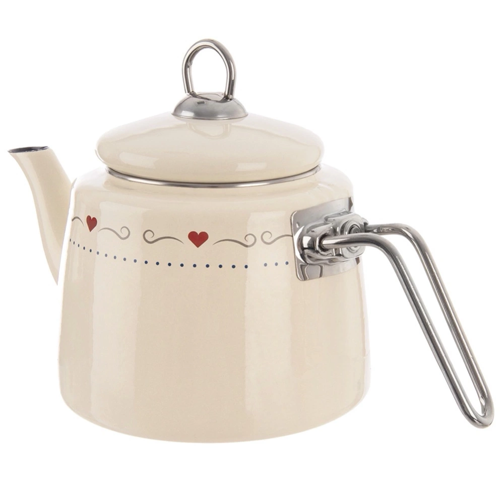 - Wykonany ze stali emaliowanej - Wykonany z najwyższej jakości stali emaliowanej w kremowym kolorze z delikatnym motywem serc. Rant czajnika oraz uchwyt zostały wykonane ze stali nierdzewnej w srebrnym kolorze. Emalia, którą pokryto naczynie jest materiałem przyjaznym dla zdrowia, a nawet bezpiecznym dla alergików.