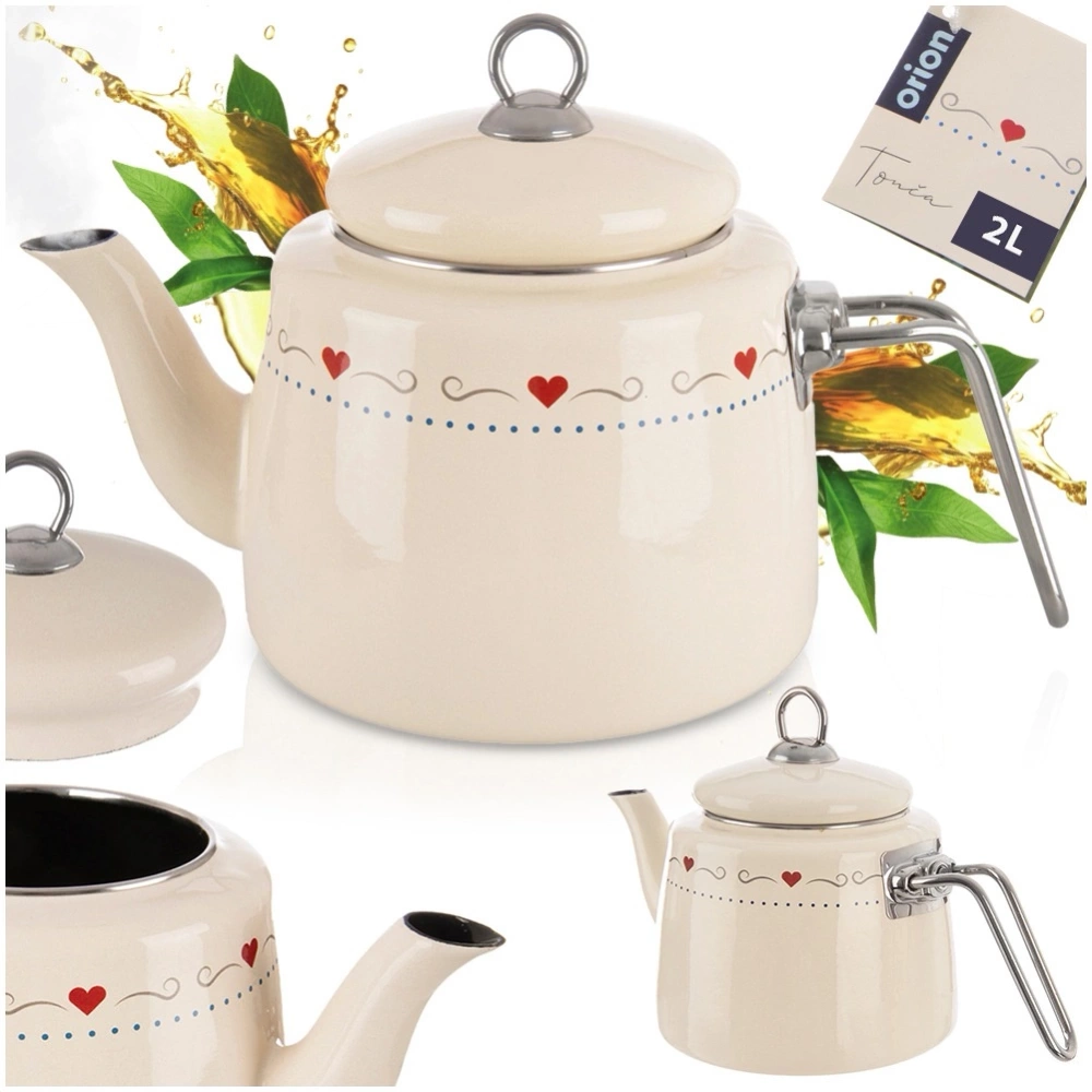 Efektowny czajnik wykonany z najwyższej jakości materiałów. Wykorzystamy go do zagotowania wody na kawę, herbatę czy do zaparzenia ziół, a także do bezpośredniego serwowania napojów. Wodę w czajniku zagotujemy bardzo szybko, a czyszczenie go jest bardzo wygodne. Naczynia emaliowane mogą posiadać niedoskonałości produkcyjne, które są naturalne dla tego typu naczyń: wybrzuszenia, niesymetryczne nadruki itp. Nie wpływają one na jakość produktu i przygotowywanych potraw, a jedynie podkreślają ich metodę tradycyjnego wykonania. Oryginalny produkt czeskiej marki Orion. Wyprodukowano zgodnie z europejskimi standardami.