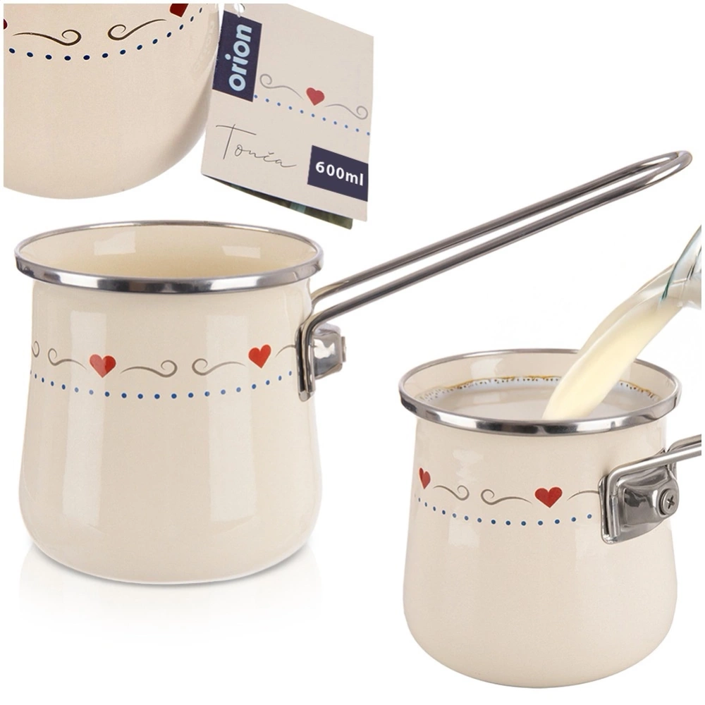 Kwadratowy tygielek do parzenia kawy po turecku to prawdziwy niezbędnik dla każdego miłośnika tego napoju. W celu uzyskania wyjątkowego smaku kawy po turecku należy wsypać zmielone ziarna kawy do tygielka, następnie zalać wodą i podgrzewać na małym ogniu. Należy powtarzać tą czynność kilkukrotnie, tak aby nie doprowadzić do wrzenia. Naczynia emaliowane mogą posiadać niedoskonałości produkcyjne, które są naturalne dla tego typu naczyń: wybrzuszenia, niesymetryczne nadruki itp. Nie wpływają one na jakość produktu i przygotowywanych potraw, a jedynie podkreślają ich metodę tradycyjnego wykonania. Oryginalny produkt czeskiej marki Orion. Wyprodukowano zgodnie z europejskimi standardami.