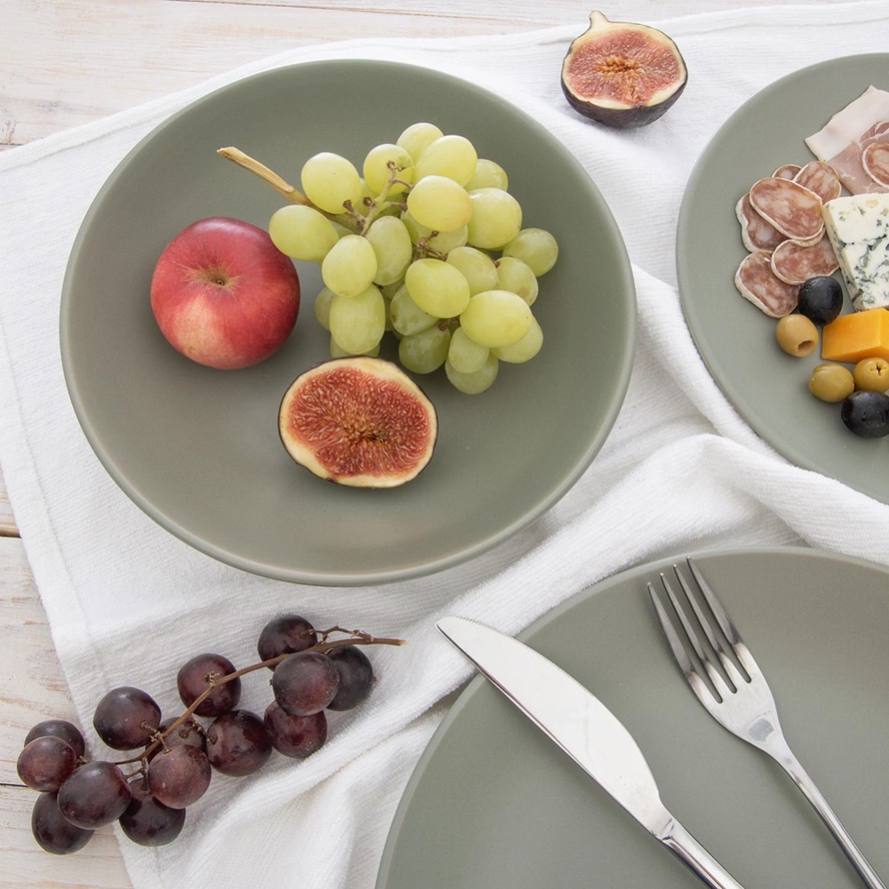 - Talerz obiadowy głęboki wykonany z ceramiki w oliwkowym, matowym kolorze. Idealny do serwowania zup, makaronów czy sałatek. Nadaje się do zmywarki i mikrofalówki.