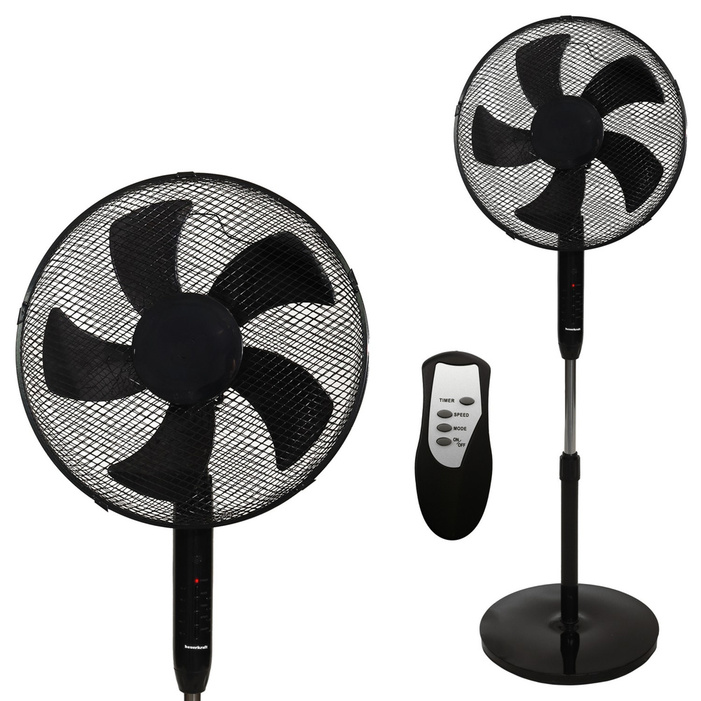 Wentylator podłogowy wiatrak stojący 5 łopatek mocny cichy timer pilot 3 tryby regulacja 45W czarny Bauerkraft