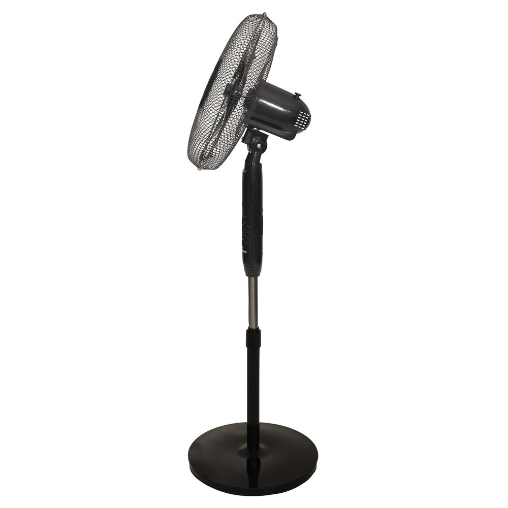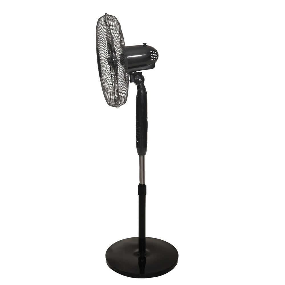 Możliwość regulacji wysokości w zakresie od 110 do 130cm pozwala na indywidualne dopasowanie wentylatora do swoich potrzeb. Dzięki regulacji doskonale sprawdzi się zarówno przy stanowisku pracy, jak również ustawiony obok sofy w salonie. Solidna konstrukcja zapewnia całkowite bezpieczeństwo użytkowania, zwłaszcza jeśli w domu są małe dzieci lub zwierzęta. Podstawa wentylatora dzięki swojej uniwersalnej, okrągłej formie, nie tylko zapewnia niesamowitą stabilność, ale również będzie pasować do każdej stylistyki wnętrza. Wentylator obraca się, co gwarantuje równomierne rozprowadzenie chłodnego powietrza w całym pomieszczeniu. Funkcja oscylacji pozwala na zachowanie prawidłowej cyrkulacji powietrza w wybranym pomieszczeniu oraz równej temperatury. Możliwość swobodnego ustawienia kąta nachylenia głowicy w zakresie kilkunastu stopni pozwala dopasować kierunek nawiewu do własnych preferencji i upodobań.