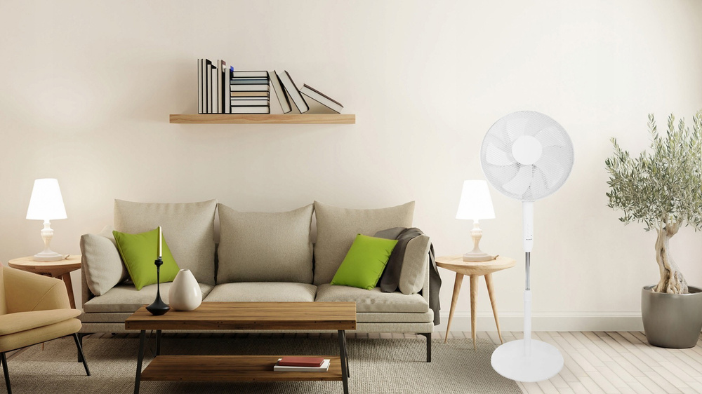 Nowoczesny wentylator podłogowy ułatwia cyrkulację powietrza w nawet bardzo upalne dni. Dzięki specjalnie skonstruowanemu wirnikowi z 5 łopatkami urządzenie zapewni równomierny nawiew powietrza, a dzięki funkcji oscylacji chłodne powietrze dotrze do każdego miejsca w pomieszczeniu. Wentylator funkcjonuje w 3 trybach pracy, dzięki czemu zapewnia wysoki komfort użytkowania, jest cichy – nie przeszkodzi w pracy, odpoczynku, a także podczas snu. Doskonale sprawdzi się w domu, mieszkaniu, biurze czy szkole.