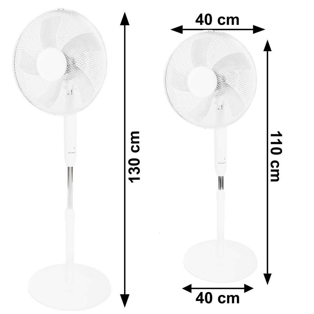 Stylowy wygląd i klasyczny kolor można dopasować do każdego wyposażenia biura i domu. Kratkowana osłona gwarantuje bezpieczeństwo małych dzieci. Urządzenie charakteryzuje wysoka stabilność dzięki zastosowaniu wyposażonej w antypoślizgowej podstawy krzyżowej. Wybór jednego z trzech trybów prędkości gwarantuje, że dostosujesz temperaturę do swoich potrzeb. Duża średnica śmigieł, napędzanych silnikiem o mocy 45W, w połączeniu z oscylacją sprawiają, że wentylator z łatwością schłodzi większe pomieszczenie.