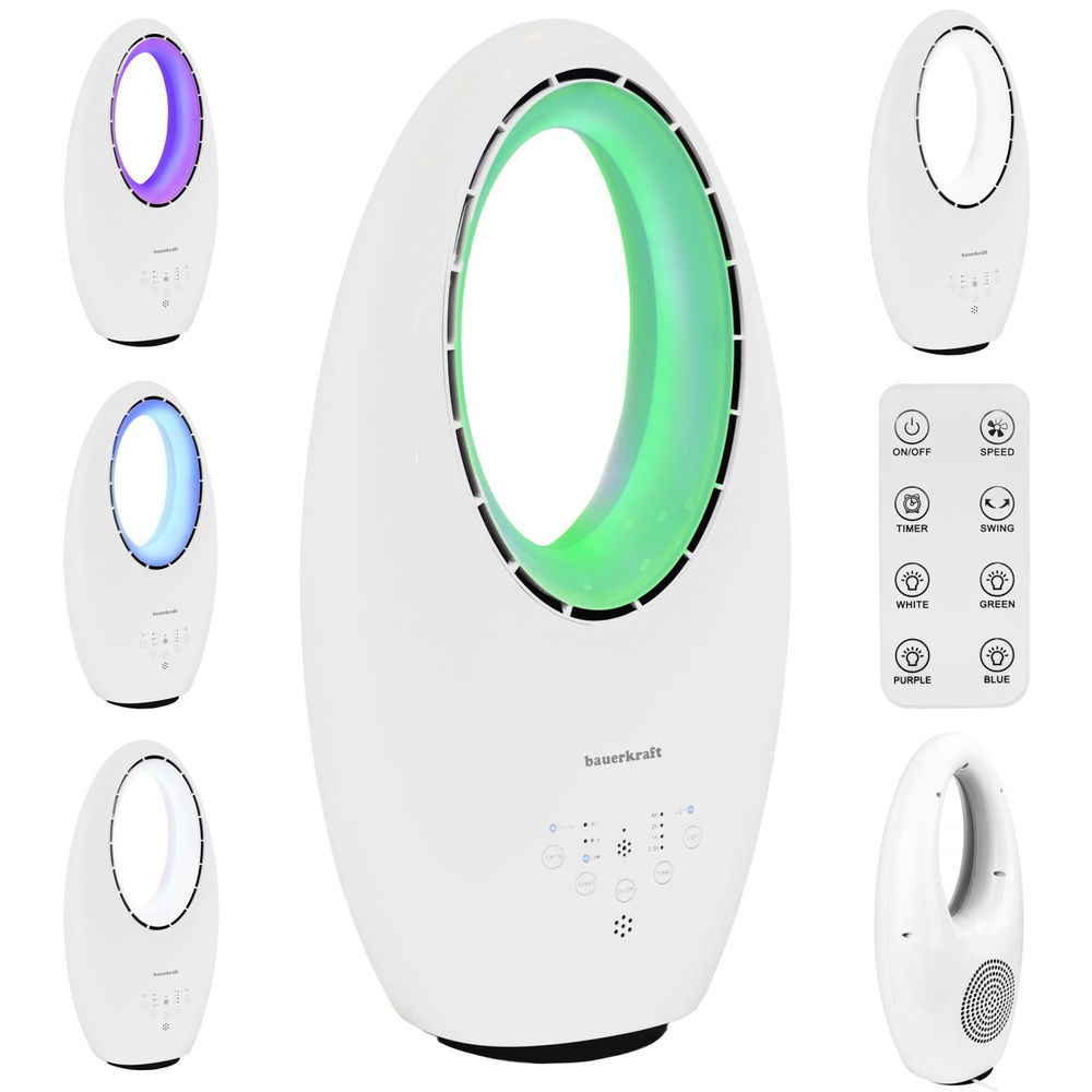 Nowoczesny wentylator stojący bezłopatkowy podłogowy pilot timer LED kolory biały 3 tryby obrotowy