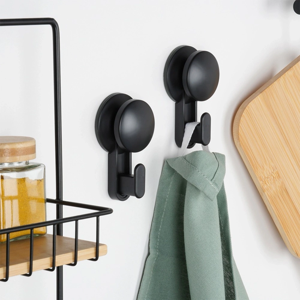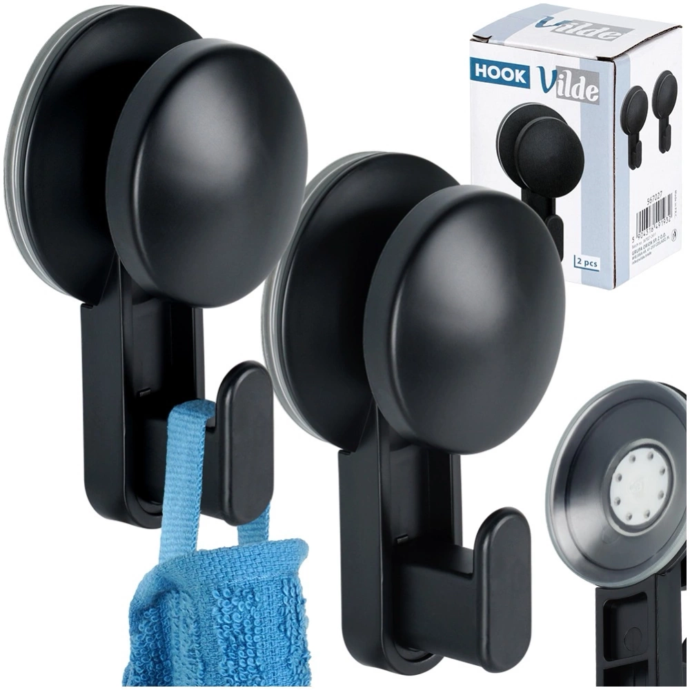 - Zestaw dwóch haczyków na przyssawkę wykonanych z wytrzymałego tworzywa. Idealne do wieszania ręczników, ściereczek czy ubrań na gładkich powierzchniach.