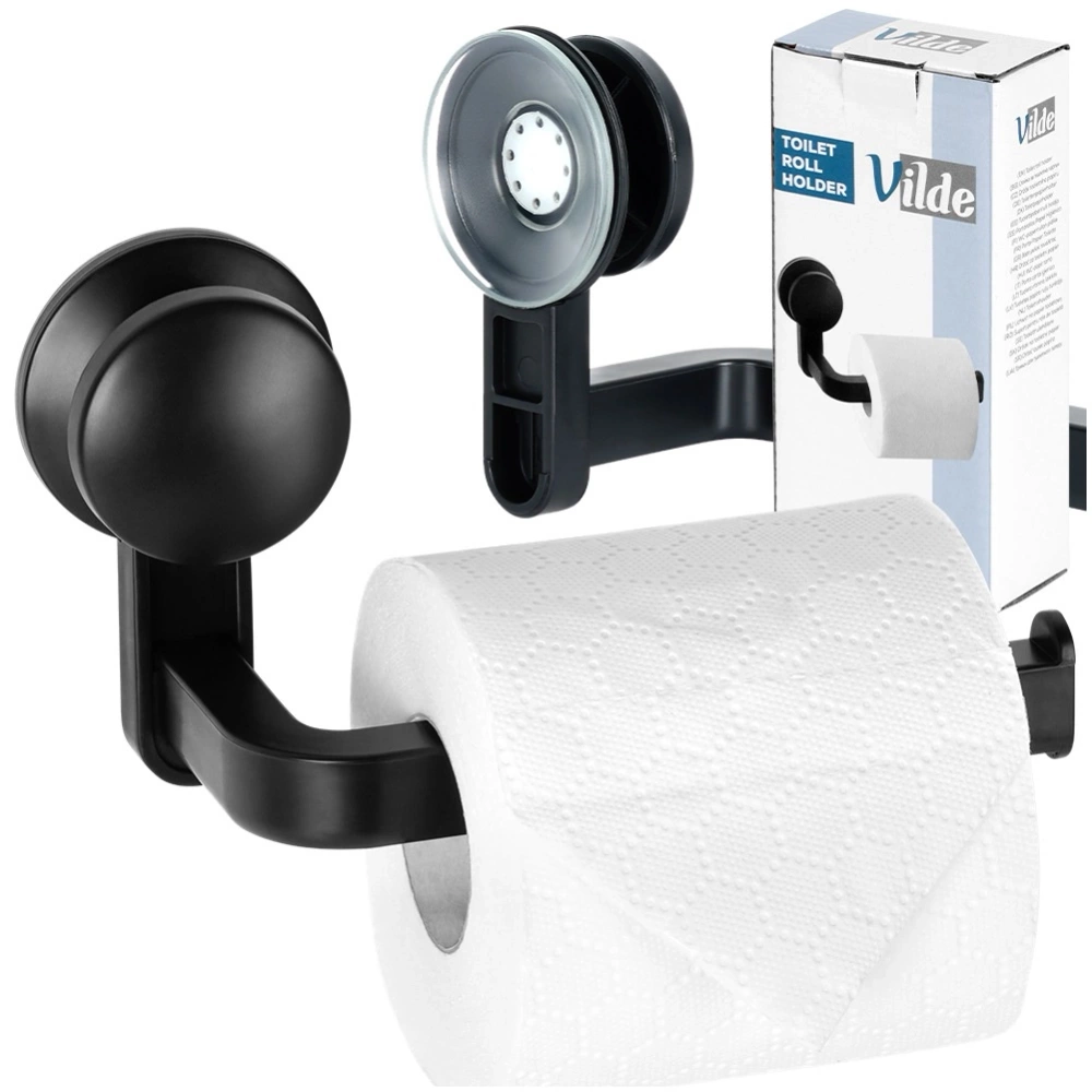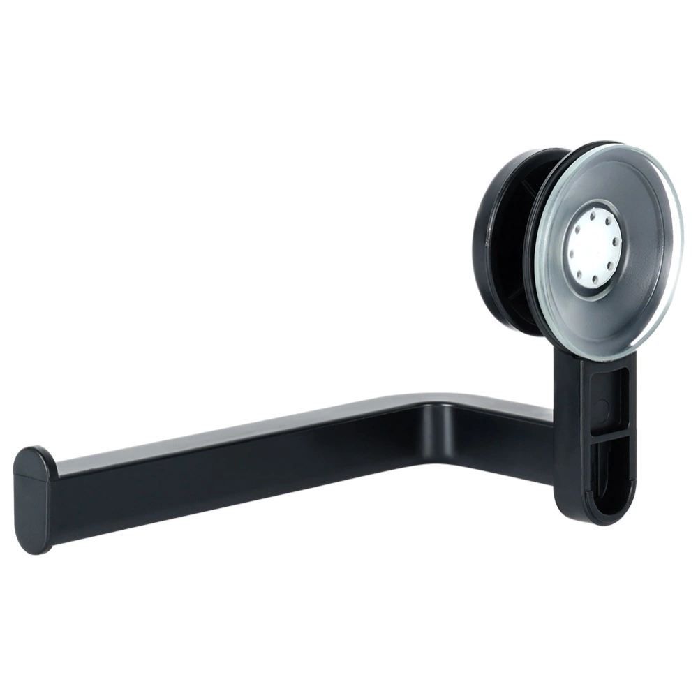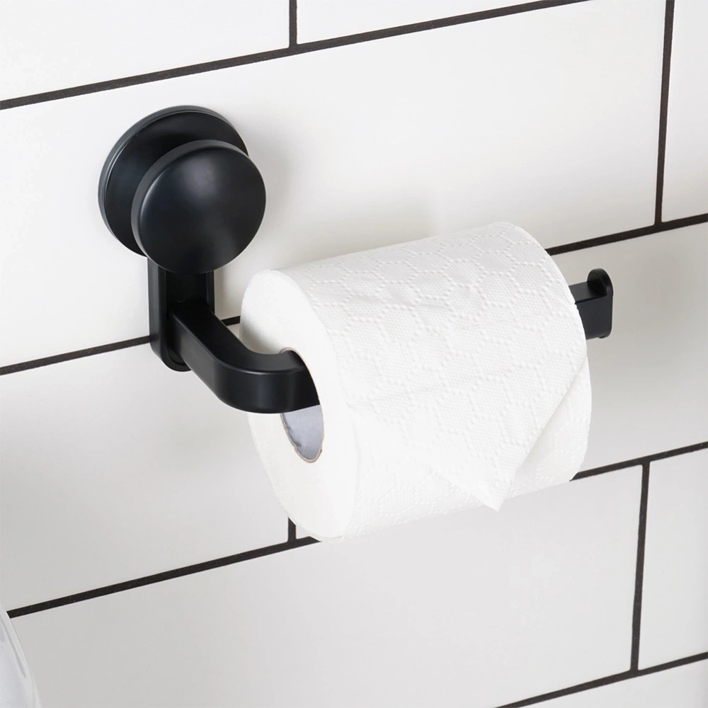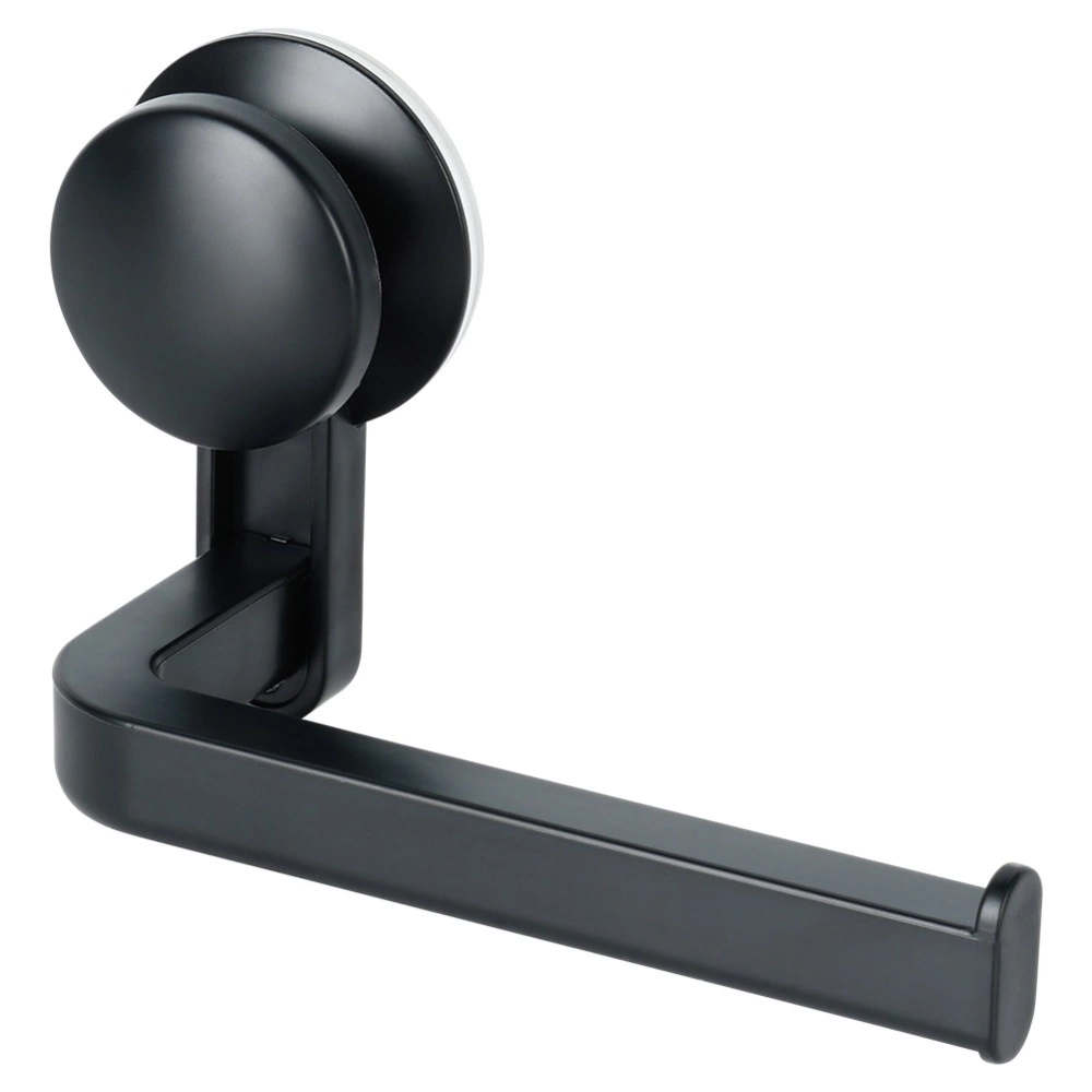 - Łazienkowy uchwyt na papier toaletowy montowany za pomocą dużej przyssawki. Wykonany z tworzywa w czarnym kolorze. Przydatny w każdej łazience.