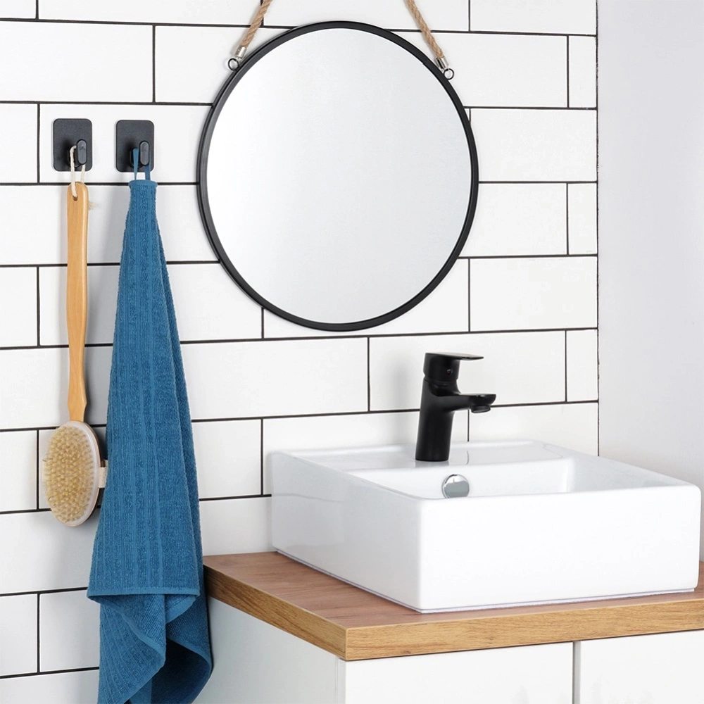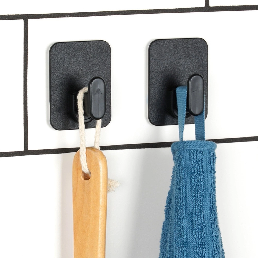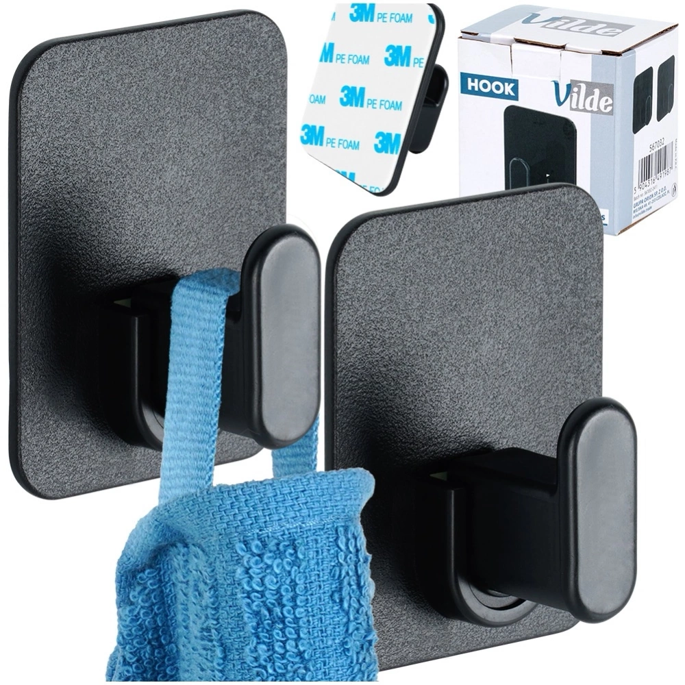 - Zestaw 2 szt. haczyków samoprzylepnych wyposażonych w taśmę 3M. Wykonane z tworzywa w czarnym kolorze. Idealne do zawieszenia ręczniczków lub ściereczek.