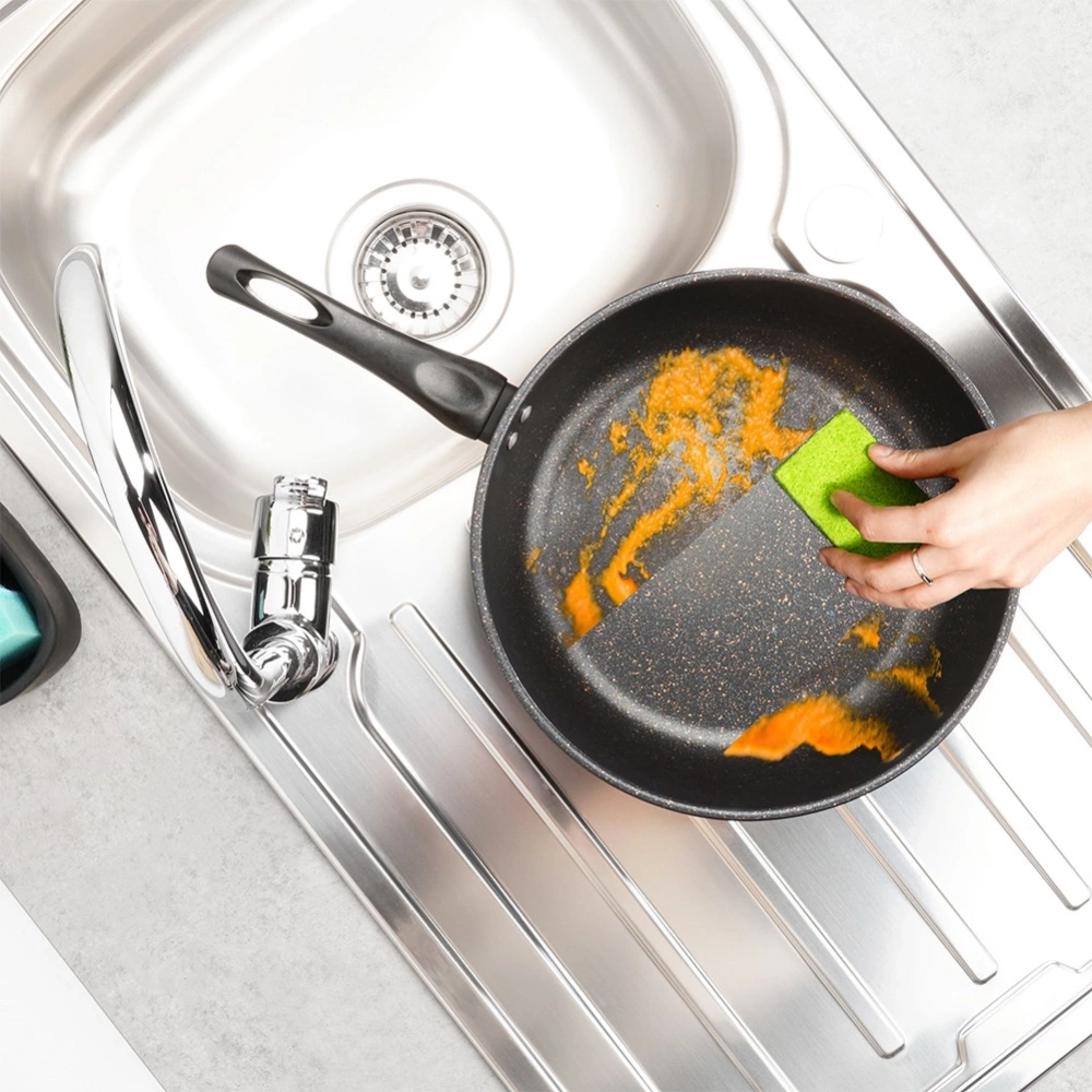 - Nieprzywierająca powłoka granitowa - Patelnia wykonana ze stali węglowej z nieprzywierającą powłoką granitową w czarnym kolorze. Powierzchnia nieprzywierająca umożliwia przygotowywanie zdrowych i smacznych posiłków z minimalną ilością tłuszczu. Uchwyt wykonany z tworzywa w czarnym kolorze.