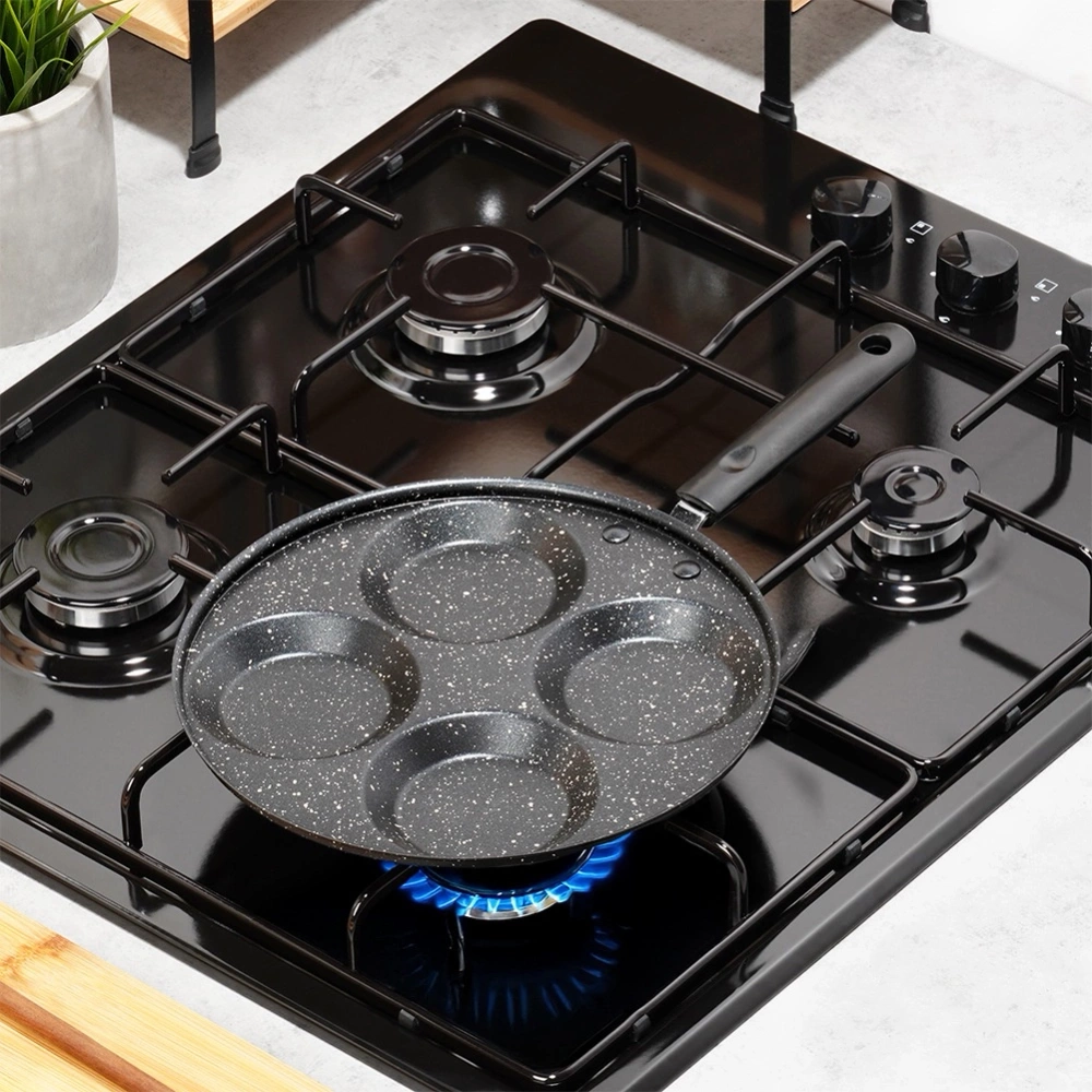 - Patelnia granitowa o średnicy 24 cm z 4 otworami. Idealna do przygotowania naleśników, placuszków oraz jajek. Nadaje się do zmywarki.