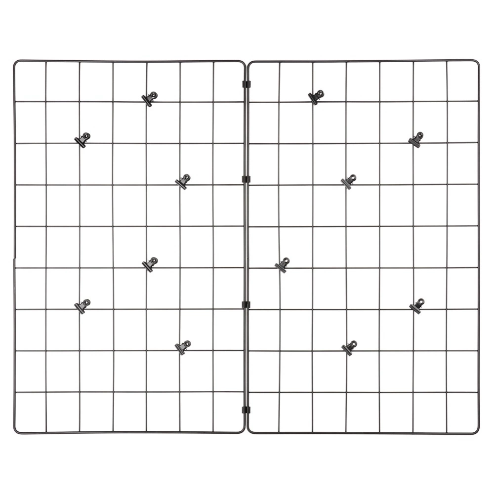 - Zestaw 2 szt. kratek na zdjęcia - Dwie prostokątne kratki do eksponowania zdjęć, notatek i drobnych przedmiotów. Zawieszane na ścianę. Każda kratka posiada 6 klipsów umożliwiających przypięcie np. karteczek. Wymiary pojedynczej kratki to 58 × 36 cm. Złączone kratki mają długość wynosi 72 cm.
