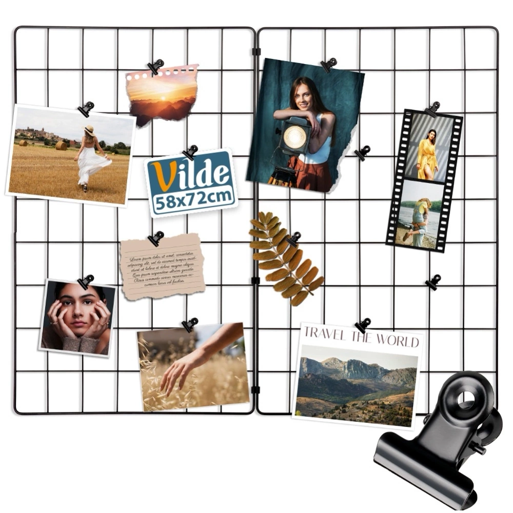 Zestaw 2 szt. kratek przydatnych do eksponowania zdjęć, notatek, drobnych przedmiotów. Posiadają wielofunkcyjne zastosowanie. Możemy wykorzystać je w różnych pomieszczeniach w domu. Mogą stanowić element dekoracyjny na którym wyeksponujemy ważne dla nas rzeczy takie jak notatki, zapiski, pocztówki, zdjęcia itp. Oryginalny produkt marki Vilde. Wyprodukowano zgodnie z europejskimi standardami.