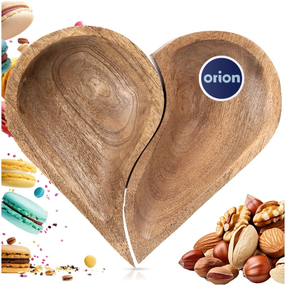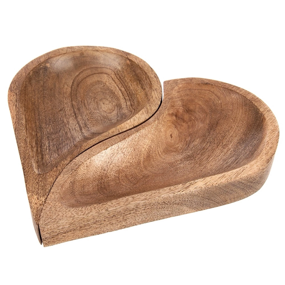 - Zestaw dwóch talerzy, które tworzą efektowny kształt serca. Wykonane z naturalnego drewna mangowca. Idealne do serwowania dań i przekąsek.