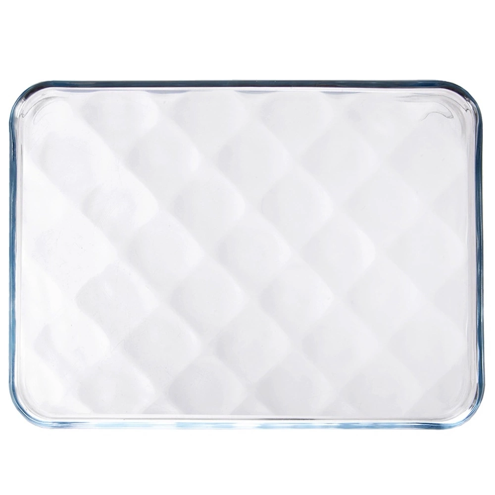- Naczynie żaroodporne - Praktyczne naczynie żaroodporne do pieczenia i serwowania w formie tacy o wymiarach 33,5 x 24,5 x 2 cm. Powierzchnia tacy posiada dekoracyjne tłoczenie w formie delikatnych rombów. Struktura ta nadaje jej elegancki wygląd, a jednocześnie, zapobiega przywieraniu potraw.