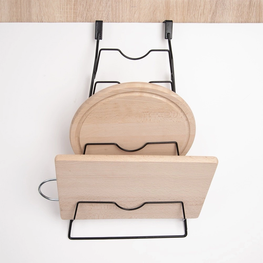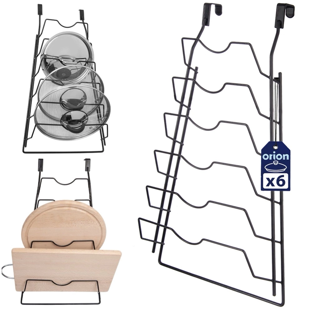 - Praktyczny organizer na 6 pokrywek do powieszenia na drzwiach szafki. Dzięki niemu będziemy mieć uporządkowane pokrywki zawsze pod ręką.