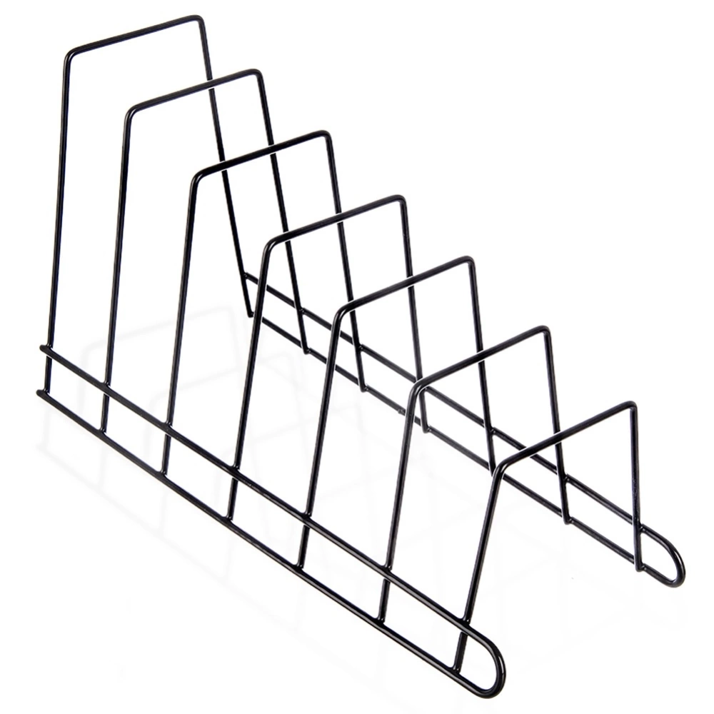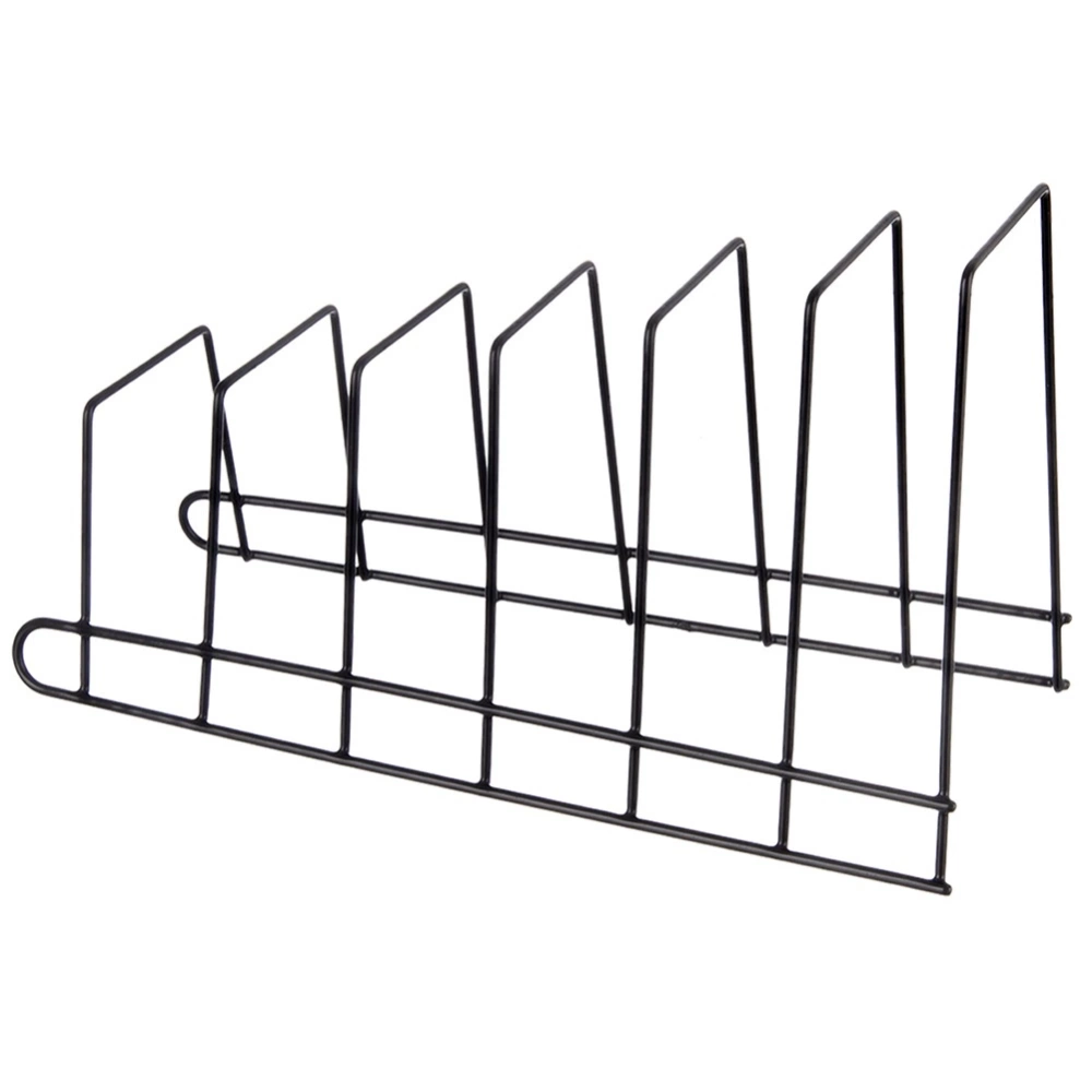 - Praktyczny organizer wykonany z metalu w kolorze czarnym. Szybko i łatwo wyciągniemy właściwy talerz z szuflady lub szafki. Pomieści 6 talerzy, pokrywek lub desek.