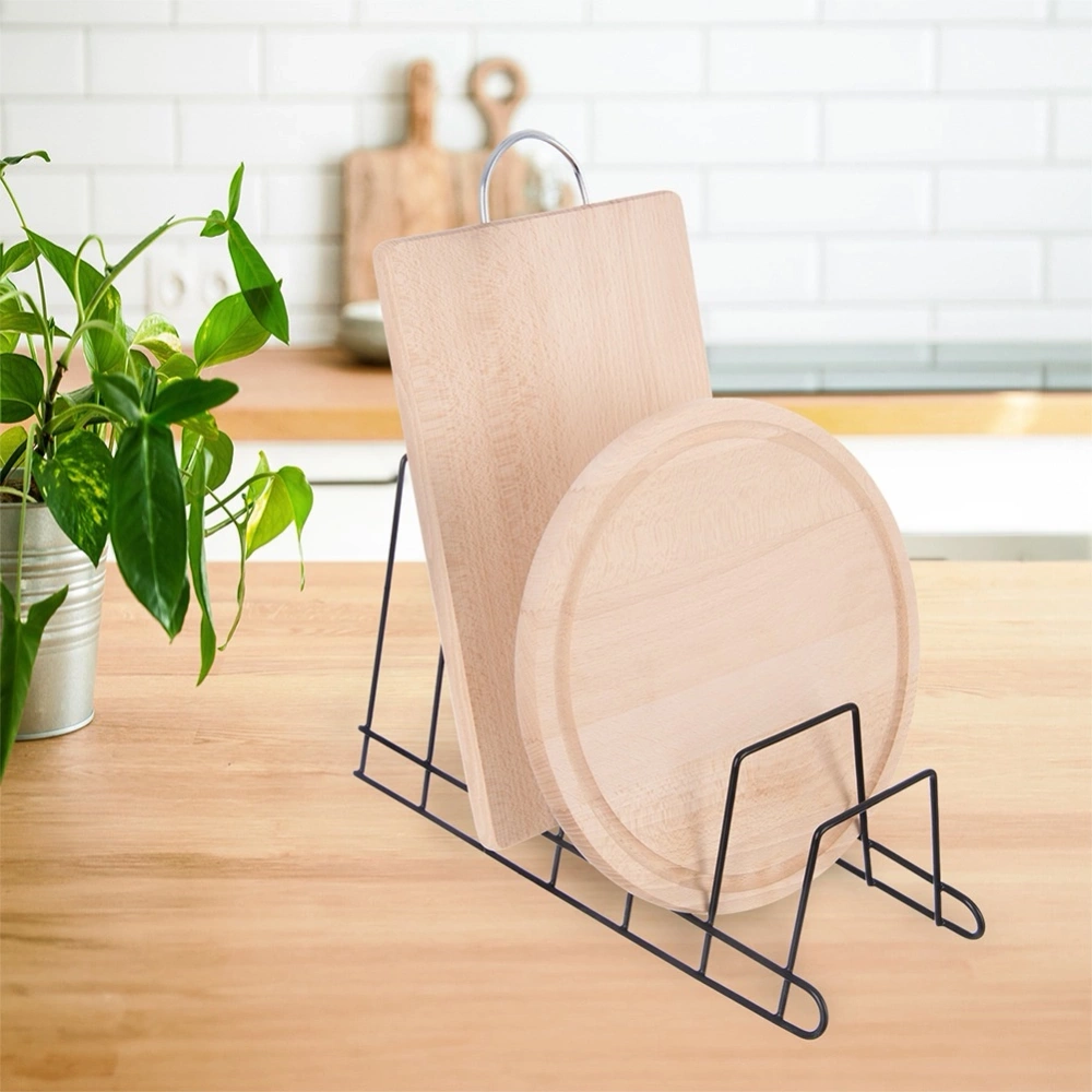 - Stojak na pokrywki i talerze - Przydatny w każdej kuchni stojak na pokrywki i talerze o wymiarach 34,5 x 14 x 19 cm. Organizer pomieści 6 talerzy lub pokrywek. Można przechowywać w nim również deski do krojenia. Stojak z serii Radka.