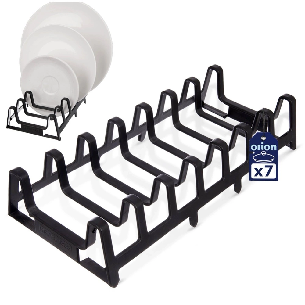 - Praktyczny organizer wykonany z tworzywa w kolorze czarnym. Szybko i łatwo wyciągniemy właściwy talerz z szuflady lub szafki. Pomieści 7 talerzy, pokrywek lub desek.