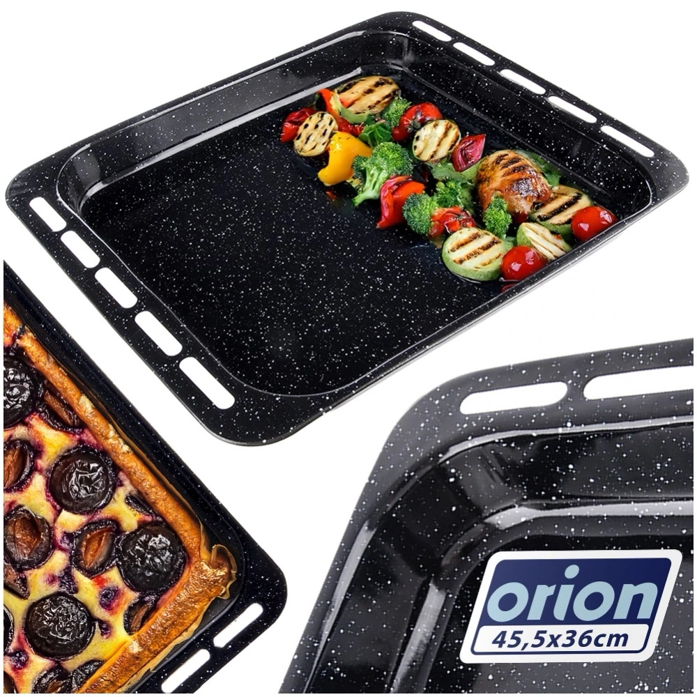 Emaliowana blacha do pieczenia to niezastąpiony element wyposażenia każdej kuchni. Ułatwia przygotowywanie różnorodnych potraw i gwarantuje trwałość oraz łatwe czyszczenie. Idealne do pieczenia słodkich i słonych potraw. Wykonane z najwyższej jakości materiałów, co zapewni komfort użytkowania. Oryginalny produkt czeskiej marki Orion. Wyprodukowano zgodnie z europejskimi standardami.