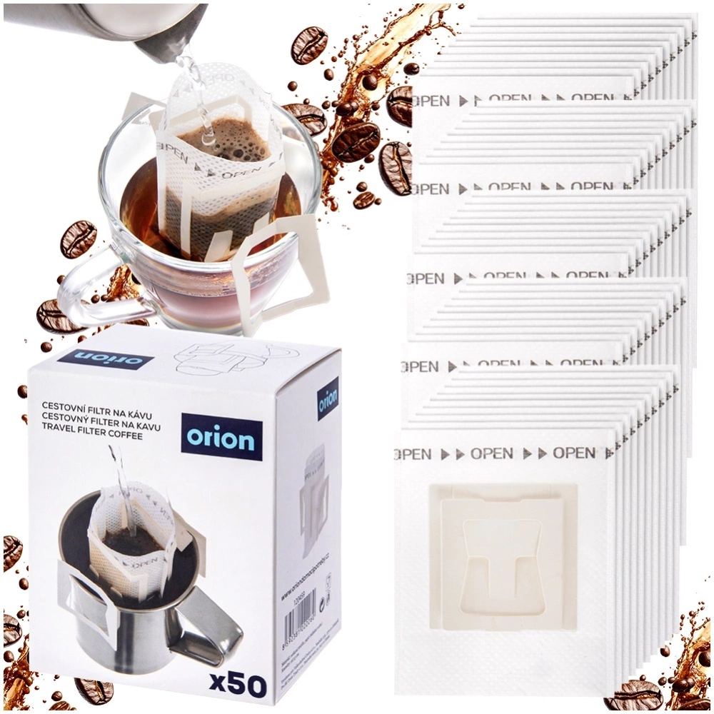 Zestaw 50 szt. filtrów do zaparzania kawy i herbaty to praktyczne i higieniczne rozwiązanie wszędzie tam, gdzie nie mamy dostępu do tradycyjnego zaparzacza. Ułatwiają szybkie przygotowanie naparu bez fusów i są niezwykle przydatne w podróży. Oryginalny produkt czeskiej marki Orion. Wyprodukowano zgodnie z europejskimi standardami.