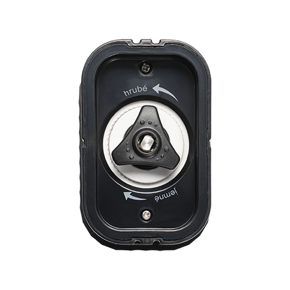 - Regulacja grubości mielenia - Ceramiczny mechanizm mielący umożliwia precyzyjne ustawienie grubości mielenia, wystarczy obrócić pierścień regulacyjny zgodnie z ruchem wskazówek zegara (drobne mielenie) lub w przeciwnym kierunku (grube mielenie).