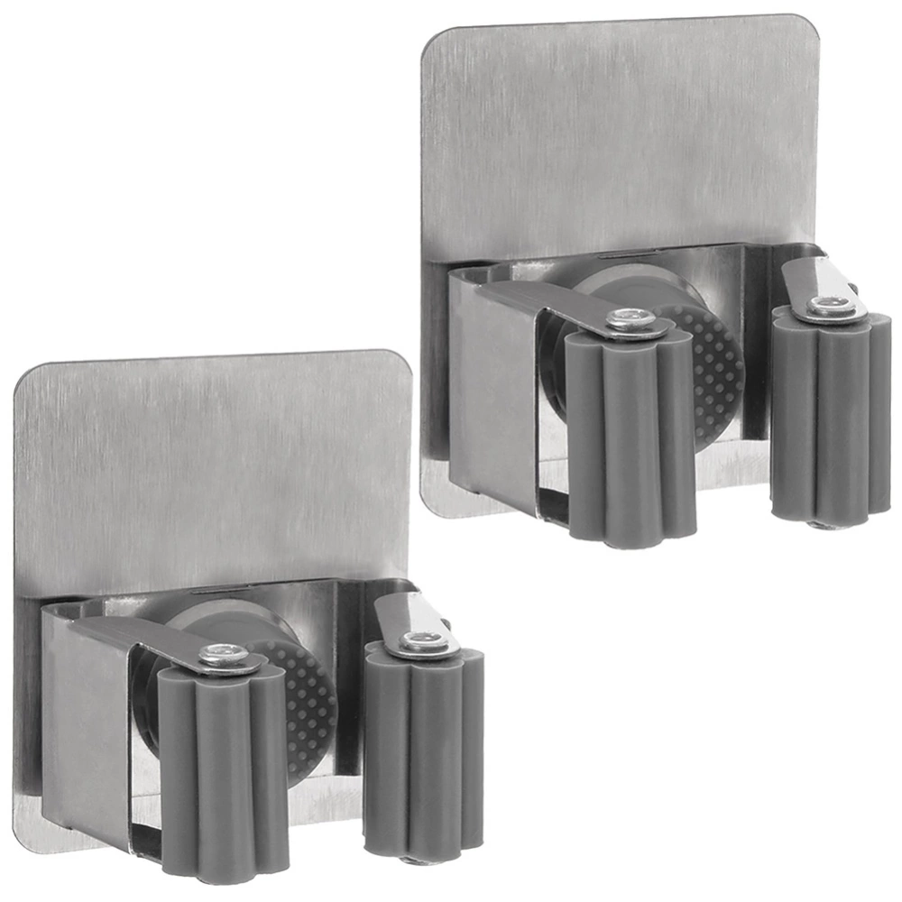 - Zestaw 2 uchwytów samoprzylepnych na mopy, szczotki, grabie. Pasują do trzonków o średnicy do 2,5 cm. Montaż bez wiercenia, utrzymują ciężar do 5 kg.