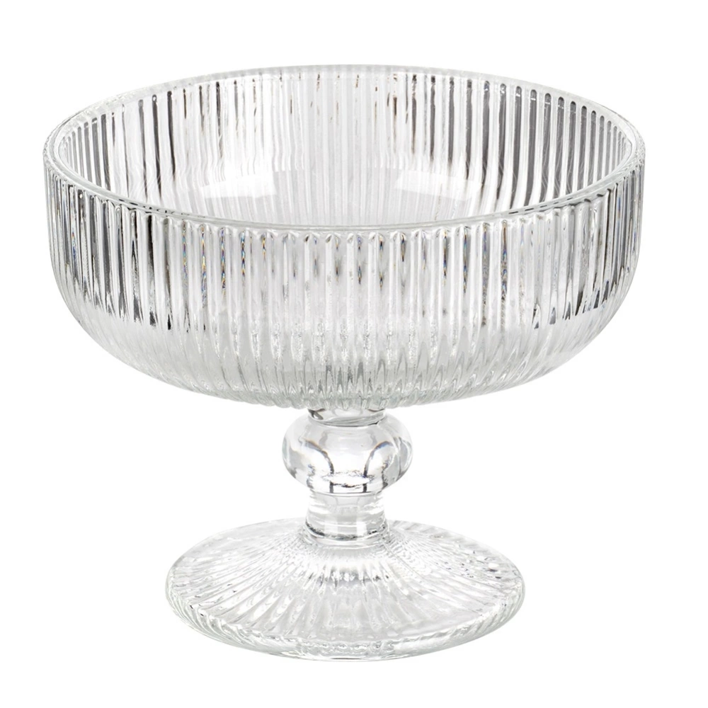 - Wykonane z ryflowanego szkła - Pucharki wykonane są z najwyższej jakości, grubego szkła w przezroczystym kolorze. Posiadają ryflowaną strukturę, która nadaje im elegancki i dekoracyjny wygląd oraz przyciąga wzrok.