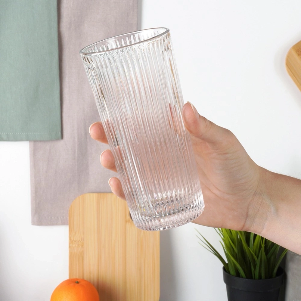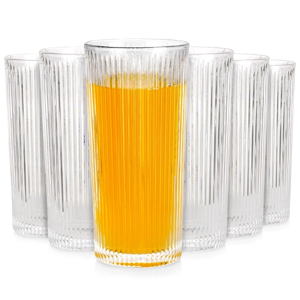 - Zestaw sześciu szklanek o pojemności 320 ml. Wykonane z ryflowanego szkła. Idealnie nadają się do wody, lemoniady, drinków, soków i innych napojów.