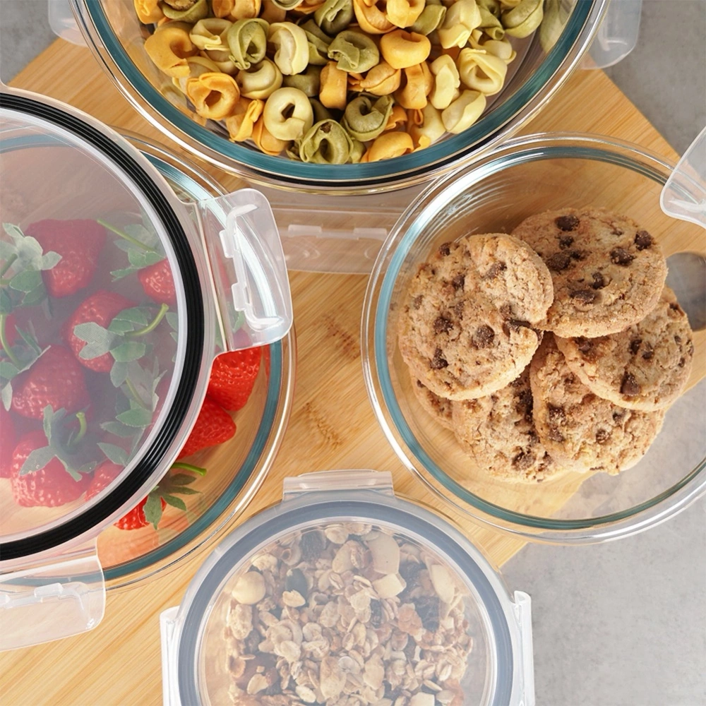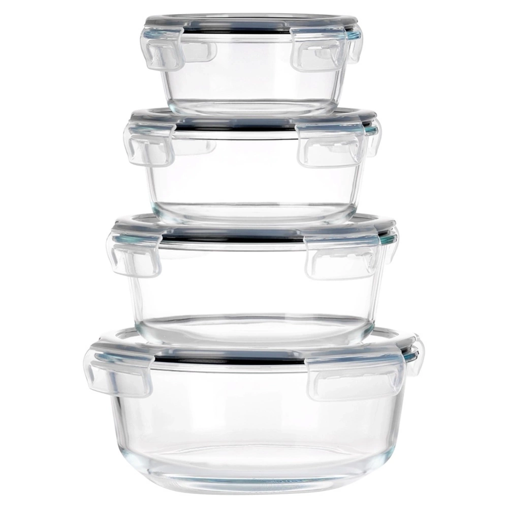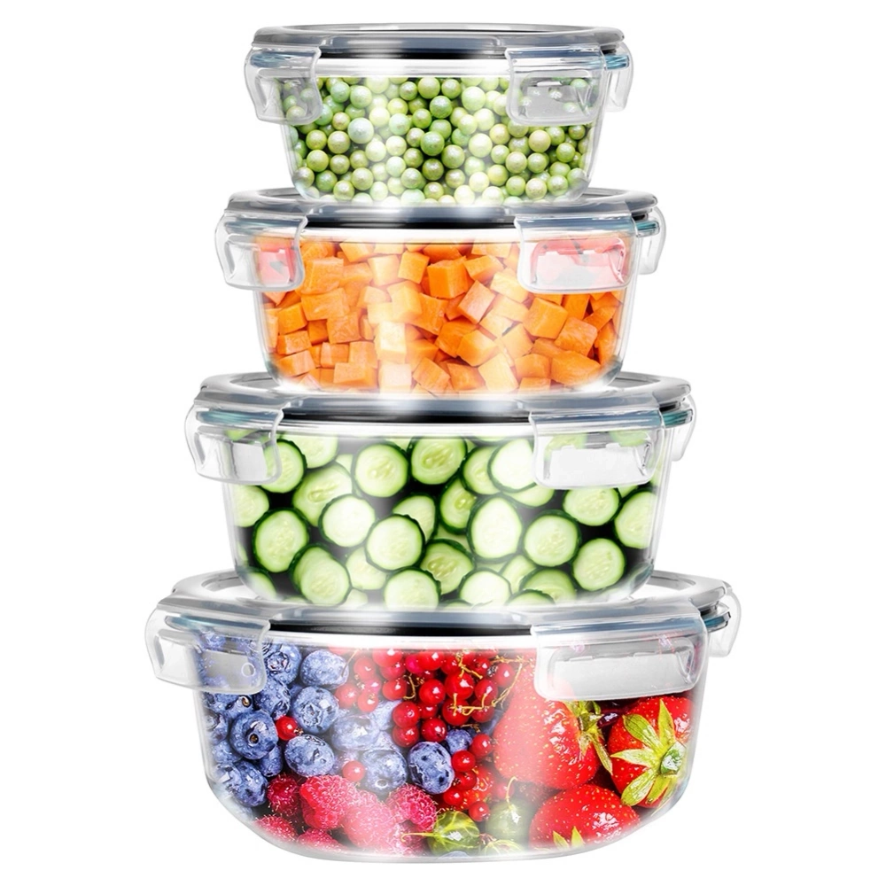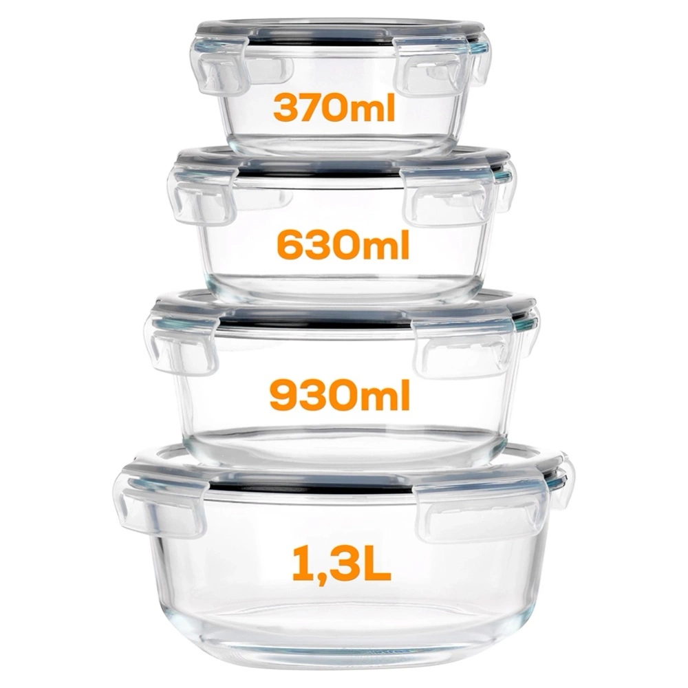 - Zestaw 4 pojemników kuchennych w różnych rozmiarach. Idealne do przechowywania żywności oraz produktów sypkich. Wykonane ze szkła, pokrywka jest szczelna dzięki uszczelce.
