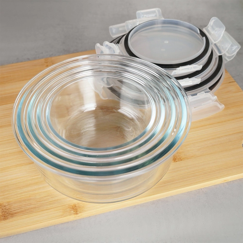 - Wykonane ze szkła borokrzemowego - Pojemnik wykonany z odpornego na wysokie temperatury szkła borokrzemowego. Pokrywka wykonana z najwyższej jakości, przezroczystego tworzywa, posiada silikonową uszczelkę w kolorze czarnym. Przezroczysty kolor pozwoli na wygodne sprawdzenie zawartości pojemnika, bez konieczności otwierania go.