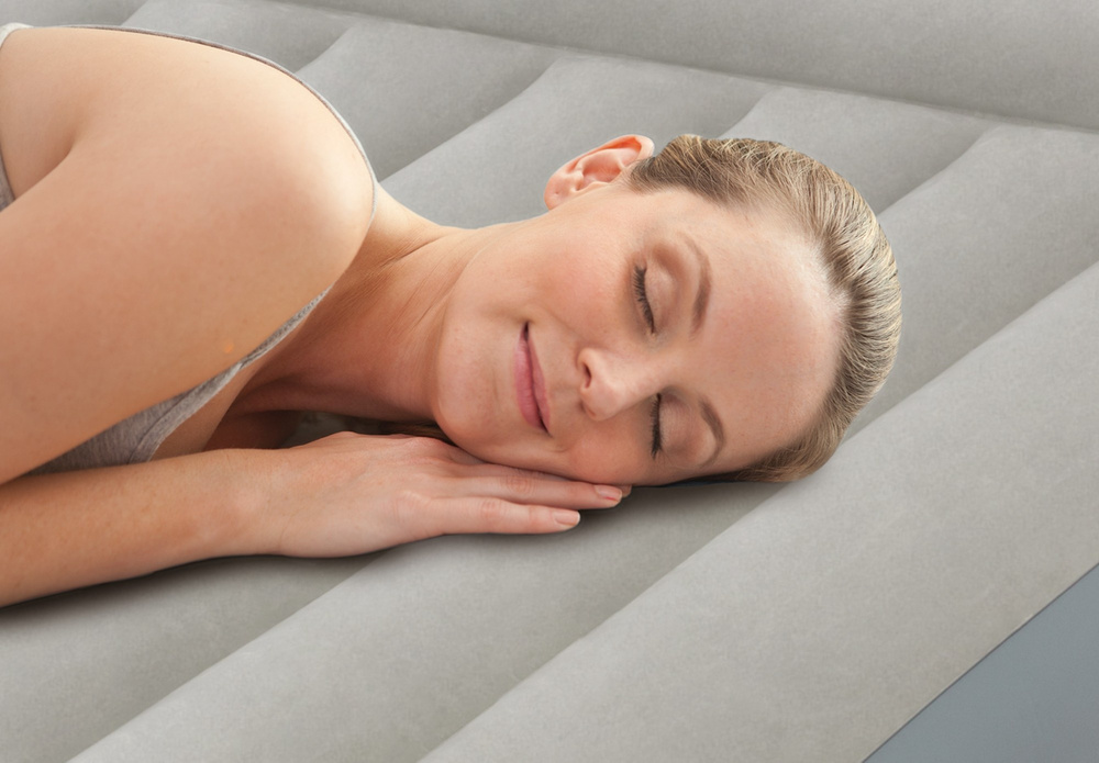 Wbudowana poduszka zapewni dodatkowy komfort podczas użytkowania. Górna część materaca została pokryta miłym w dotyku welurowym materiałem.Materac posiada wbudowaną pompkę (moc 220-240 V), dzięki której produkt będzie gotowy do użycia w bardzo krótkim czasie.Do zestawu dołączona jest łatka naprawcza.