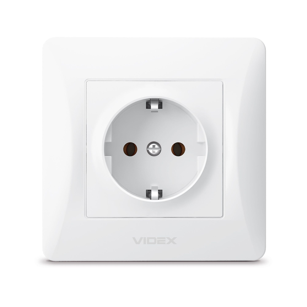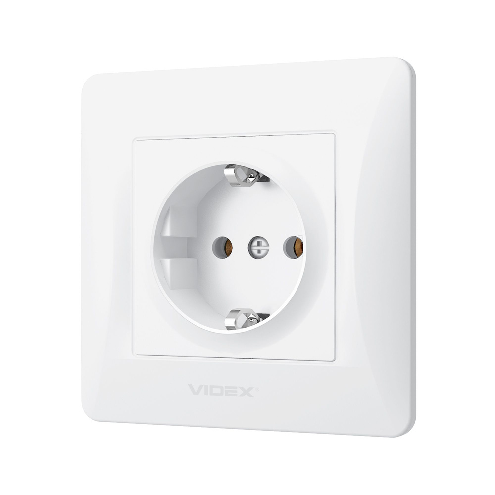- Białe gniazdo schuko VIDEX BINERA o stopniu ochrony IP20, 16A i napięciu 250V. Przeznaczone do montażu podtynkowego z uziemieniem, zapewnia trwałość i bezpieczeństwo użytkowania.