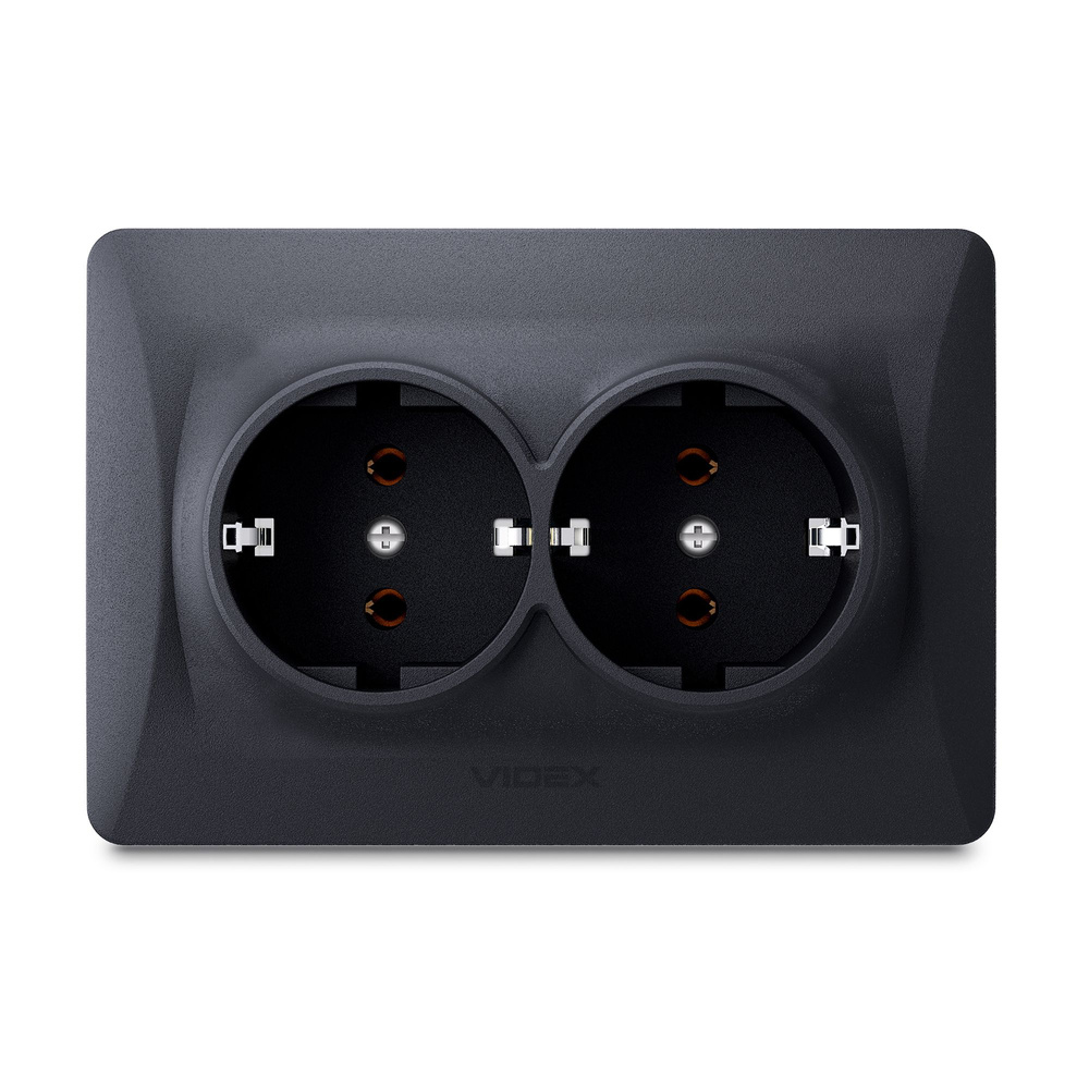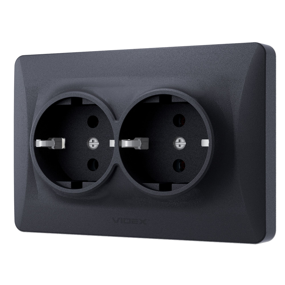 - Podwójne gniazdo schuko VIDEX BINERA w kolorze czarnym grafitowym, 16A, IP20, do montażu podtynkowego z uziemieniem. Trwałe materiały i nowoczesny design zapewniają bezpieczeństwo i estetykę.