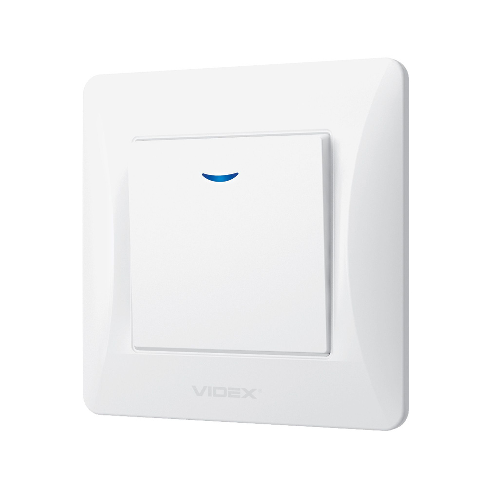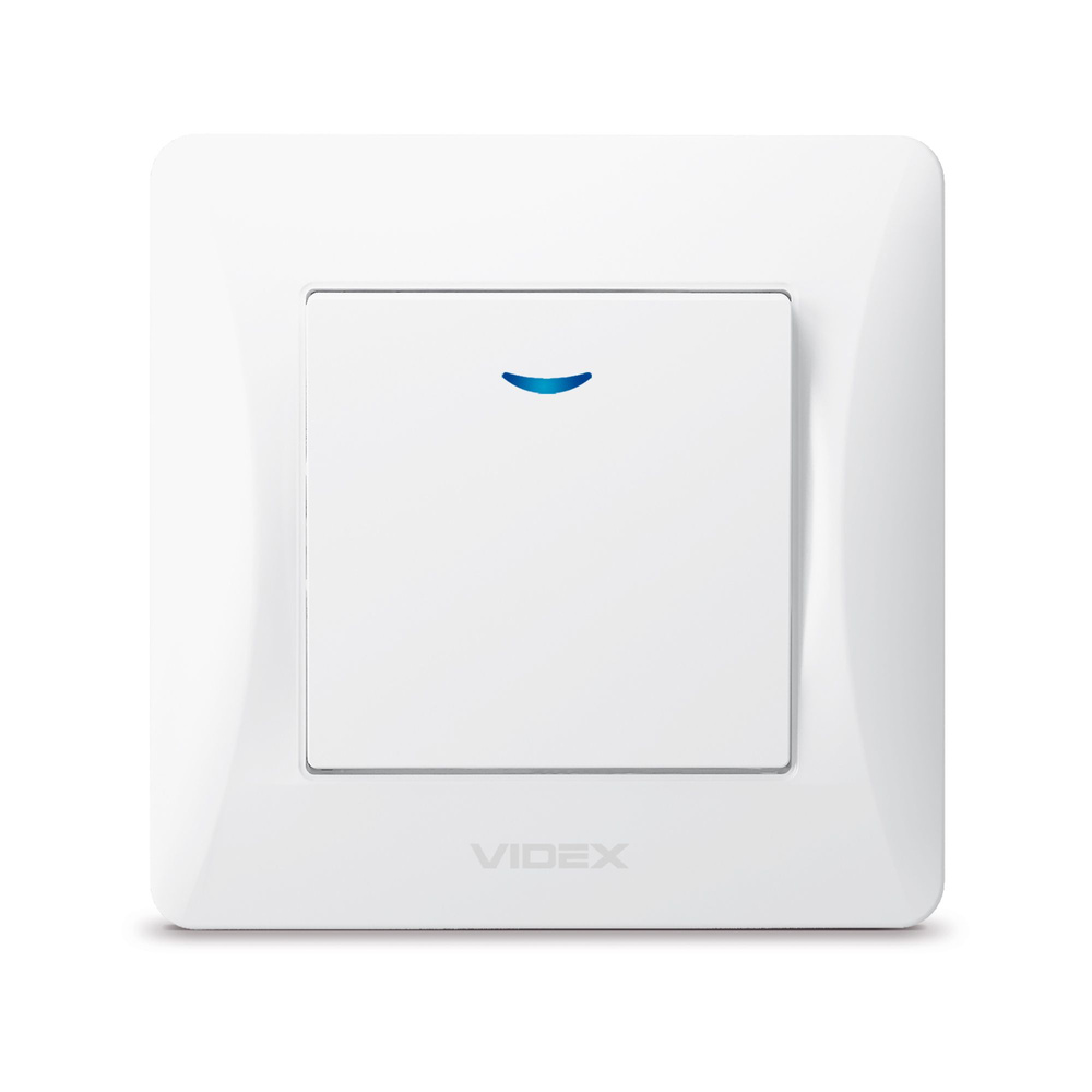 - Włącznik jednobiegunowy VIDEX BINERA z podświetleniem LED, o napięciu 250 V i natężeniu 10A. Przeznaczony do montażu podtynkowego, klasa szczelności IP20, idealny do wnętrz mieszkalnych i biurowych.