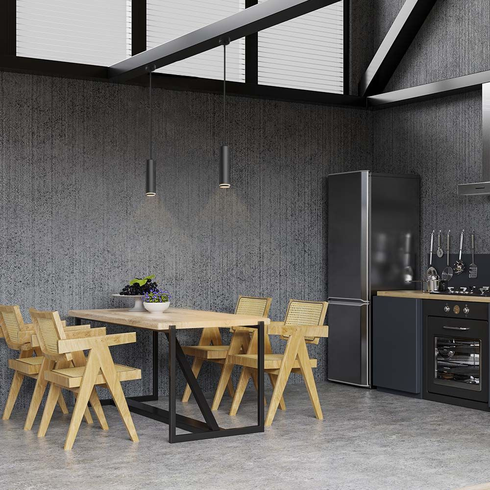 - Dekoracyjna wewnętrzna lampa wisząca przeznaczona jest do oświetlenia nowoczesnych apartamentów, barów, restauracji, kawiarni itp. Doskonale sprawdzi się w loggiach i korytarzach, a także jako wydzielone strefy w dużych pomieszczeniach. Korpus lampy wykonany jest z aluminium – lekkiego i wytrzymałego metalu, odpornego na korozję. Powierzchnia klosza pokryta jest matową farbą o piaskowej fakturze, odporną na drobne zarysowania. W zależności od rodzaju zastosowanych lamp, lampa ta może być stosowana zarówno do oświetlenia ogólnego pomieszczeń, jak i do oświetlenia akcentującego poszczególne strefy wnętrza. Oprawy z wymiennym źródłem światła mają swoje zalety, takie jak brak konieczności wymiany całej oprawy w przypadku awarii żarówki. Trzonek: GU10