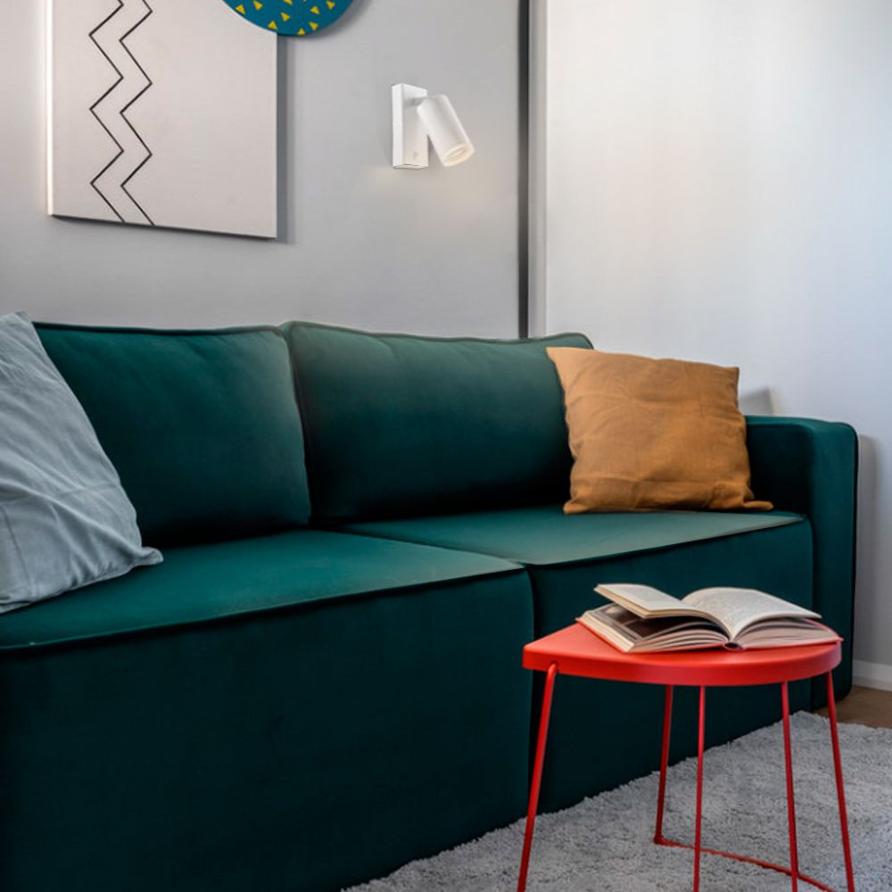 - Dekoracyjna lampa ścienna przeznaczona jest do montażu przy sofach, fotelach i łóżkach. Dzięki mechanicznemu włącznikowi doskonale sprawdzi się zarówno do czytania, jak i jako oświetlenie nocne. Korpus lampy wykonany jest z aluminium – lekkiego i wytrzymałego metalu odpornego na korozję. Powierzchnia klosza pokryta jest matową farbą o piaskowej fakturze, odporną na drobne zarysowania. W zależności od rodzaju zastosowanej lampy, lampa ta może być stosowana zarówno do oświetlenia ogólnego pomieszczeń, jak i do oświetlenia akcentującego poszczególne strefy wnętrza. Posiada obrotową konstrukcję, która pozwala skupić światło na wybranym obszarze. Oprawy z wymiennym źródłem światła mają swoje zalety, takie jak brak konieczności wymiany całej oprawy w przypadku awarii żarówki. Trzonek: GU10