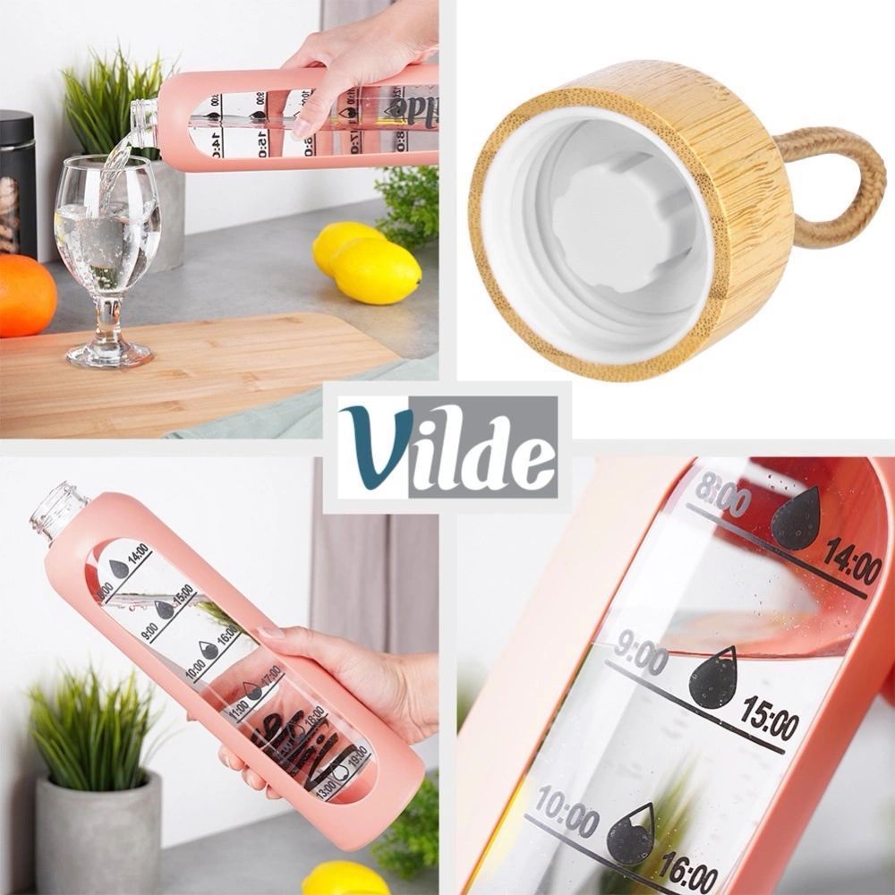 Butelka z bambusową zakrętką oraz silikonowym pokrowcem. Szczelna dzięki uszczelce. Wykonana z wytrzymałego szkła, więc nadaje się zarówno do napojów ciepłych jak i zimnych. Klasyczny design sprawia, że butelka ma wyjątkowy styl. Odpowiednie nawilżenie w ciągu dnia jest bardzo ważne, dlatego warto butelkę mieć zawsze przy sobie. Butelka jest poręczna i wygodna w użytkowaniu. Oryginalny produkt marki Vilde. Wyprodukowano zgodnie z europejskimi standardami.