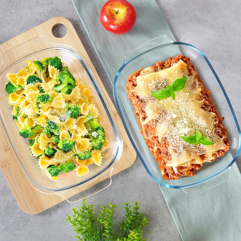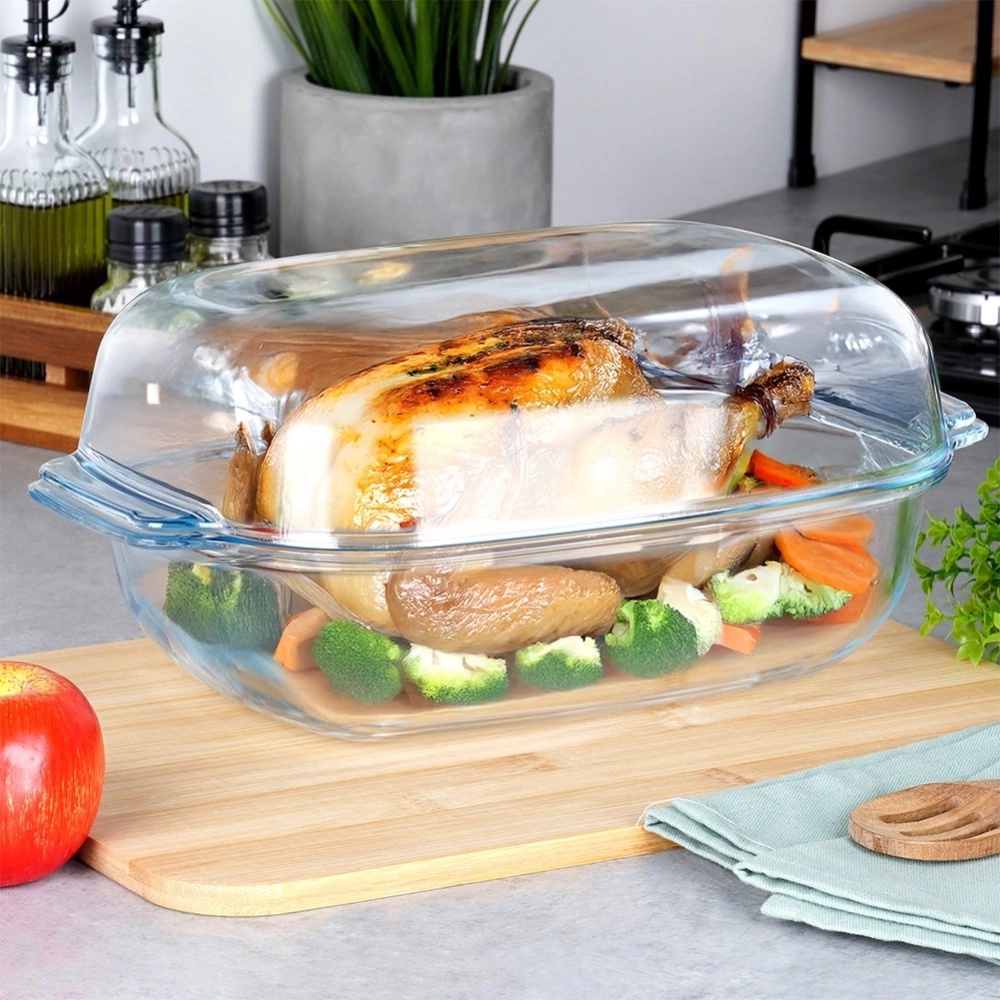 - Prostokątne, żaroodporne naczynie do pieczenia i zapiekania. Wyposażone w pokrywkę. Wykonane z odpornego szkła borokrzemowego. Nadaje się do mycia w zmywarce do naczyń.