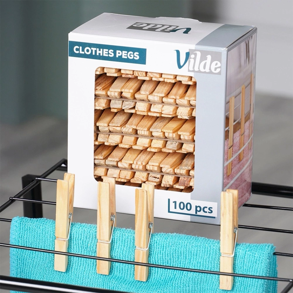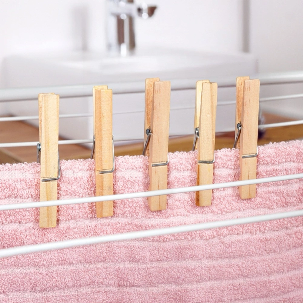 - Zestaw 100 szt. klamerek na pranie - Zestaw zawiera 100 szt. klamerek, które ułatwią codzienne suszenie prania. Idealne do mocowania odzieży na sznurku, suszarce czy wieszaku zarówno w domu, jak i na zewnątrz. Klamerki mają długość 7 cm.