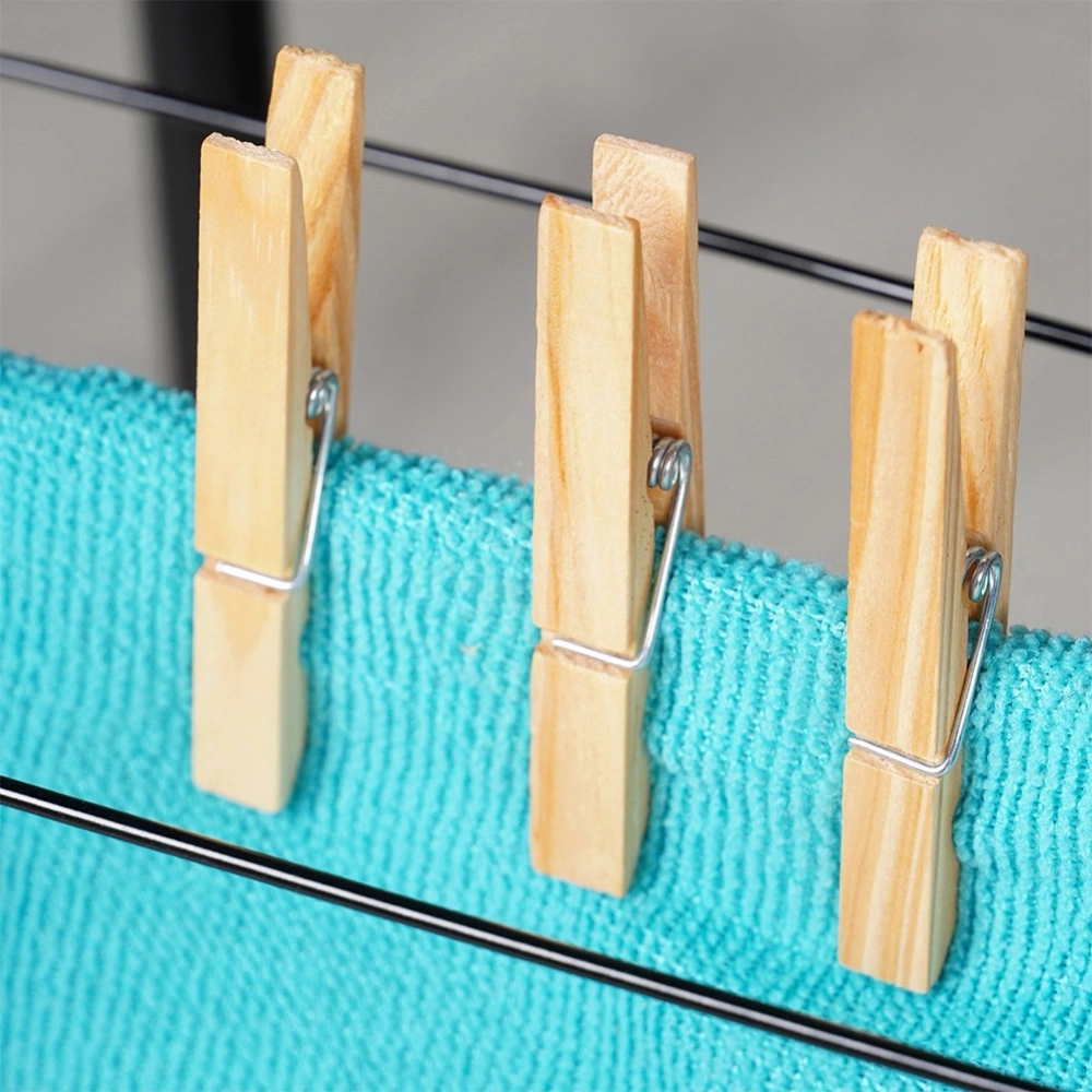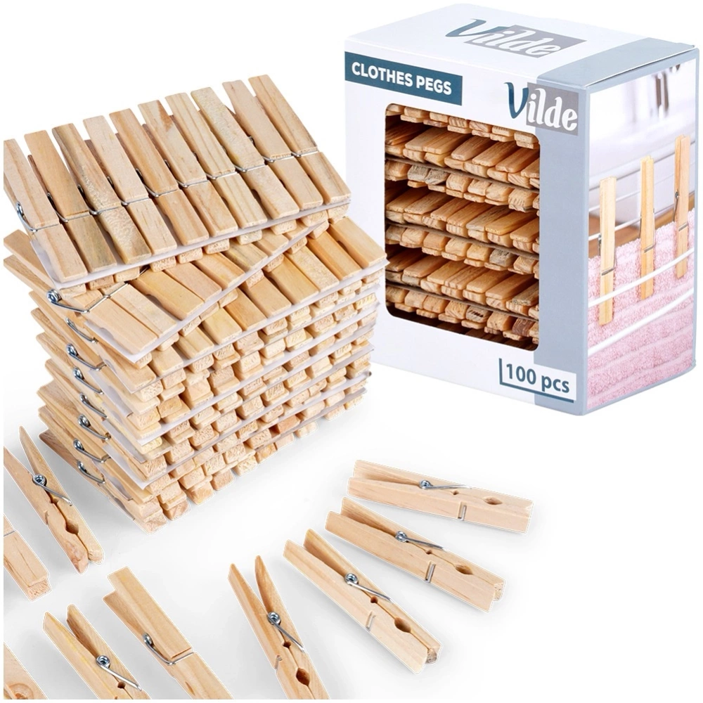 - Komplet 100 sztuk bambusowych klamerek na pranie. Mocne i wytrzymałe, utrzymają zarówno lekkie, jak i cięższe ubrania. Sprawdzą się zarówno w domu, jak i ogrodzie.