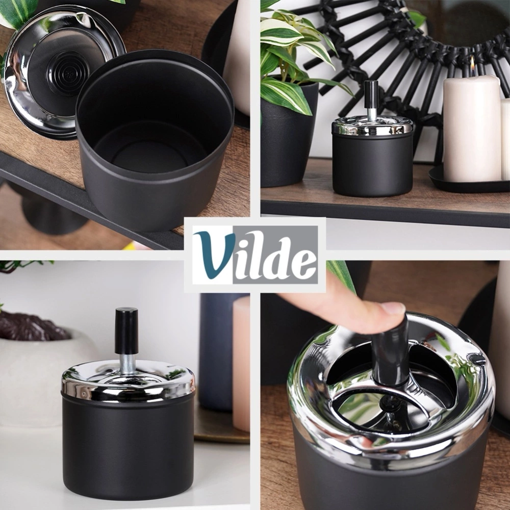 Metalowa popielniczka z pokrywką. Posiada zamknięcie, dzięki czemu brzydkie zapachy nie wydostają się. Posiada modny i elegancki design. Idealna do każdego wnętrza. Świetnie sprawdzi się w domu, na tarasie, ogrodzie czy balkonie, ale również w barze czy restauracji. Oryginalny produkt marki Vilde. Wyprodukowano zgodnie z europejskimi standardami.